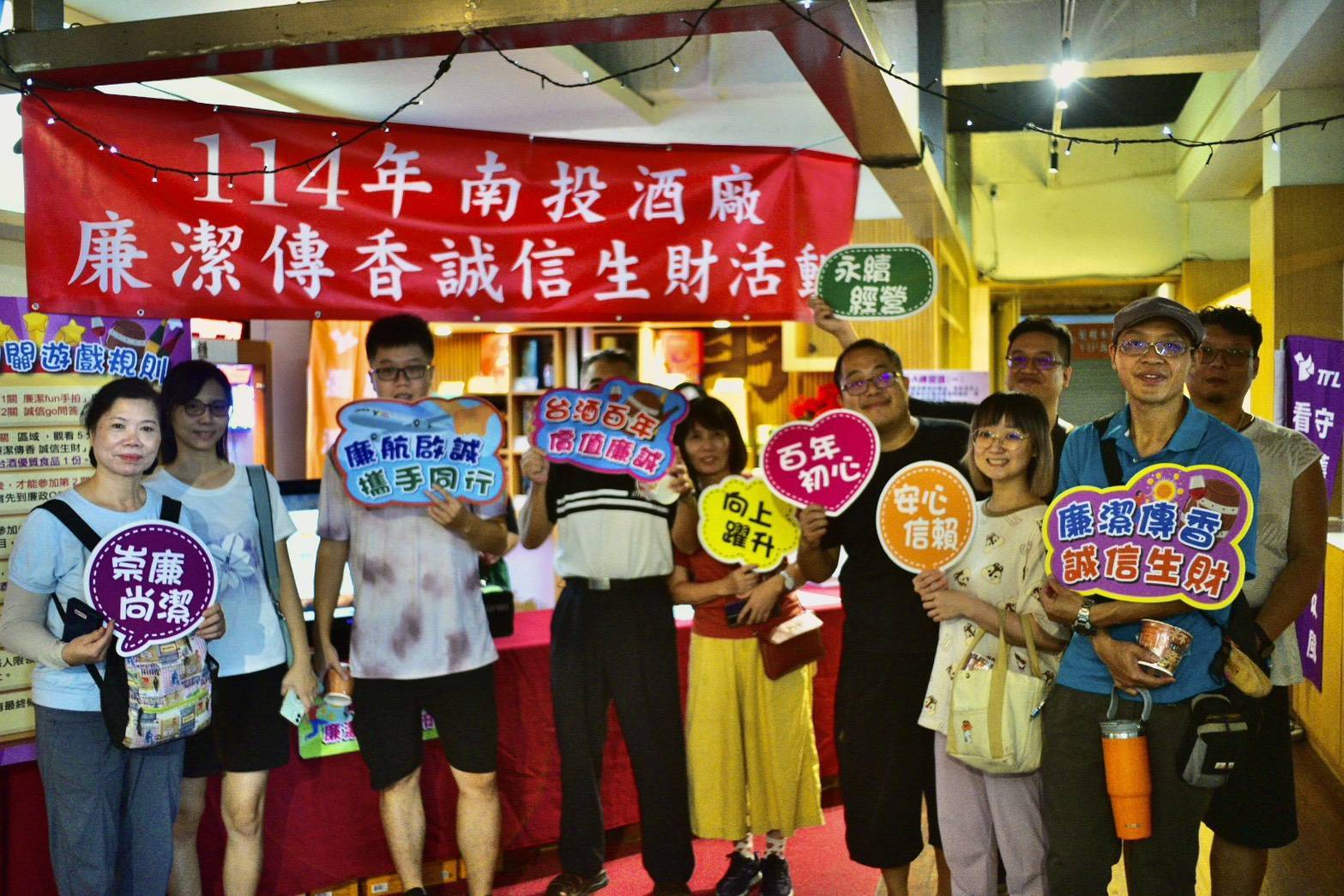 (特派員廖廣學 南投報導)南投酒廠4日舉辦「廉潔傳香 誠信生財」活動,現場人潮絡繹不絕,吸引超過千名民眾熱情參與;活動結合南投酒廠的釀酒文化與誠信精神,透過寓教於樂的趣味闖關遊戲,讓「廉潔」與「誠信」的價值深植人心,獲得民眾一致好評。