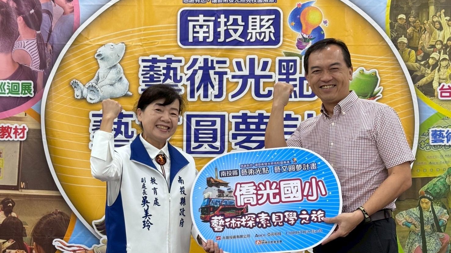 吳美玲副處長表示,誠摯感謝財團法人研揚文教基金會及各贊助單位對南投教育的長期支持與投入。基金會和各贊助單位的熱忱與行動,為南投的學童開啟了更多想像與創造的可能。這項計畫不僅深化藝術與教育的結合,也為本縣藝文教育注入嶄新的能量與風貌,期盼透過藝術的力量,讓每個鄉鎮的孩子們,透過藝術展現無限潛能與獨特魅力,共同描繪出南投教育更燦爛的未來。