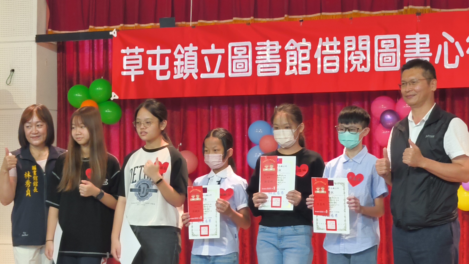南投縣草屯鎮公所圖書館每年辦理2次借閱圖書心得寫作比賽,歷年來鎮內各級國中小老師全力支持,用心指導學生,踴躍參加投稿, 成績優勝學生及各組前三名指導老師頒獎典禮,頒發禮券及獎狀予以勉勵