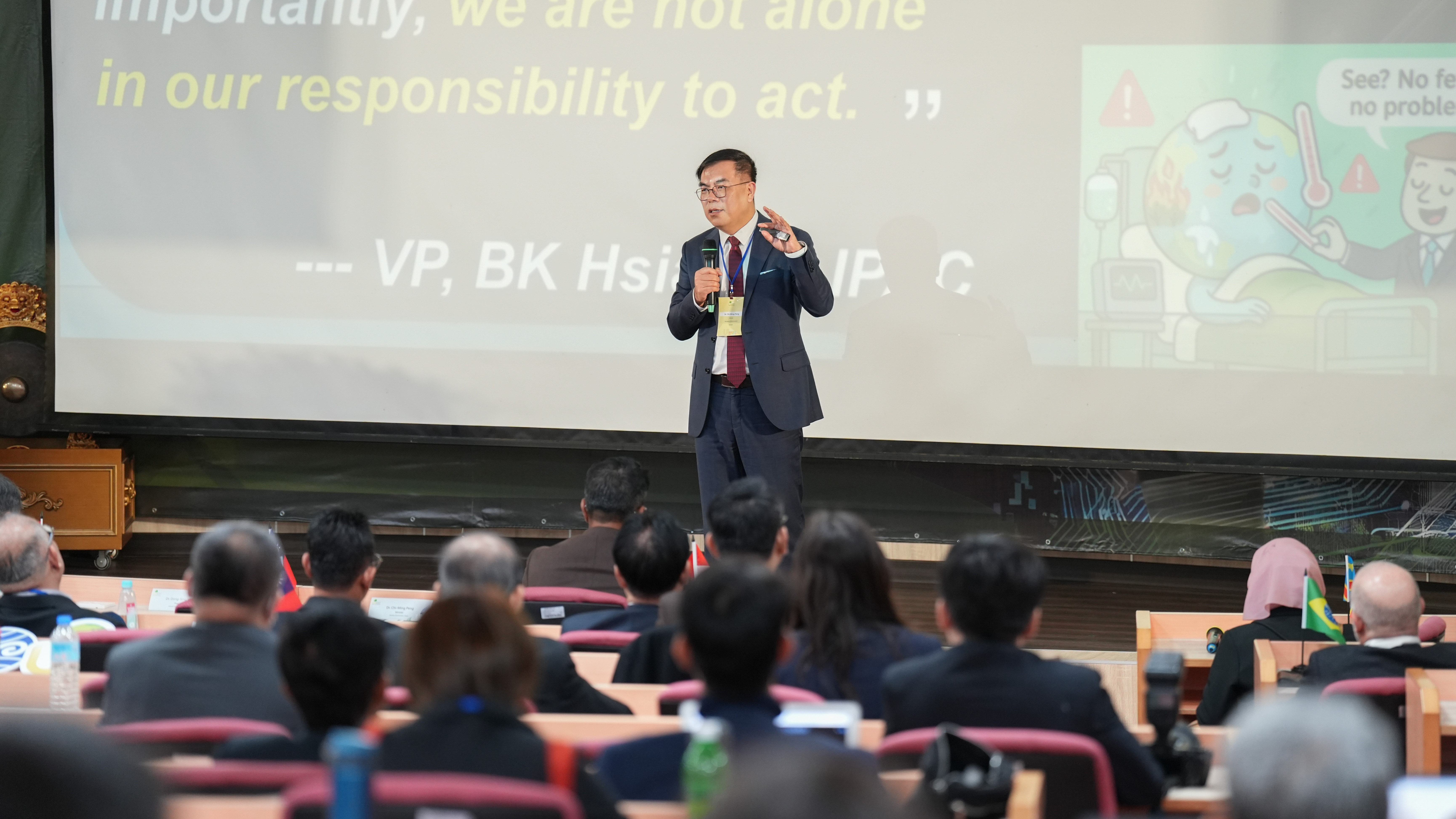 副總統蕭美琴在開幕典禮中以錄影方式致詞,對本次年會表達高度肯定。她表示,大學在面對氣候變遷時扮演關鍵角色,不僅是知識領航者,也是社會淨零轉型的核心引擎。台灣學界長期投身綠色科技、能源轉型及永續研究,已展現堅定的國際承諾。政府將持續深化國際合作,強化跨域研究與人才培育,並期望透過此次會議深化全球交流,把理念化為具體行動。