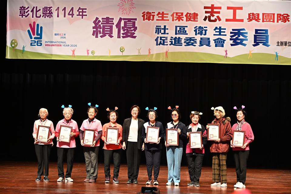 (記者邱暐茹 彰化報導)彰化縣衛生局於今(26)日上午於員林演藝廳舉辦「114年衛生保健績優志工與團隊暨社區衛生促進委員會績優委員表揚大會」,彰化縣長王惠美親臨現場頒獎。此次活動除了表彰績優個人與團隊的卓越表現,也誠摯感謝超過1,700名衛生保健志工與將近800名衛生促進委員長年對公衛業務的無私奉獻,攜手推動縣內多項衛生保健工作,展現社會溫度與大愛精神。