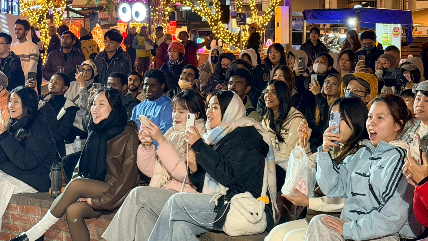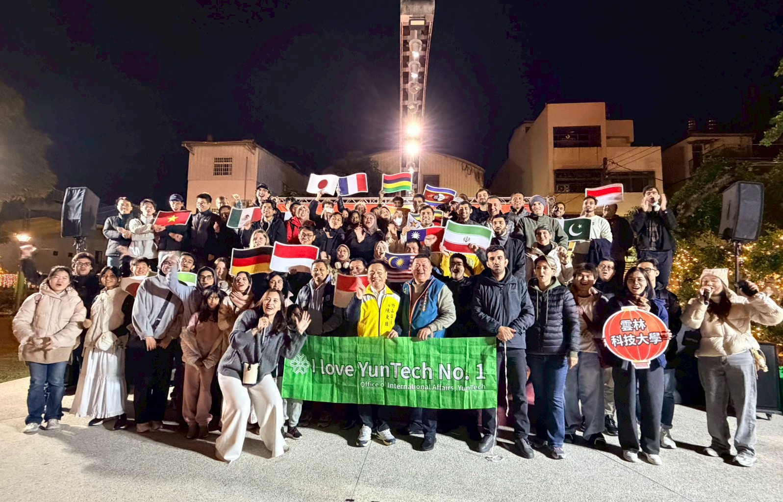 國際交換學生們漫步燈區,欣賞各式別具巧思的竹藝燈座,對於竹材能轉化為大型藝術裝置感到相當驚艷。竹山鎮長陳東睦更化身導覽人員,向國際交換學生介紹燈座的設計理念及創作特色,學生們邊逛邊拍,氣氛相當熱絡。絢麗的主燈秀更是驚艷全場,現場學生紛紛拿起手機紀錄下這精采時刻。此外,燈會現場亦設有多輛美食攤車,提供特色餐飲,讓學生們在欣賞藝術之餘,也能品嚐臺灣在地美食,感受竹山的人情味與生活文化。