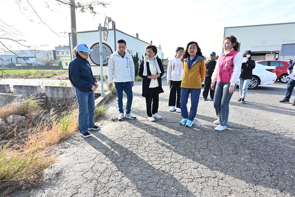 (記者邱暐茹 彰化報導)鹿港鎮鹿鳴、南勢、頂厝農地重劃區等16條農路因車輛往來頻繁,導致路面龜裂、破損及沉陷,影響民眾及農民耕作通行安全,縣府持續投入經費辦理改善作業。彰化縣長王惠美今(9)日上午前往頭崙巷臨50-20號(附近)、南勢巷186-18號(南側)、詔安巷79-50號(附近)等三處視察,要求廠商如期如質完成工程,提供鄉親安全通行的道路。