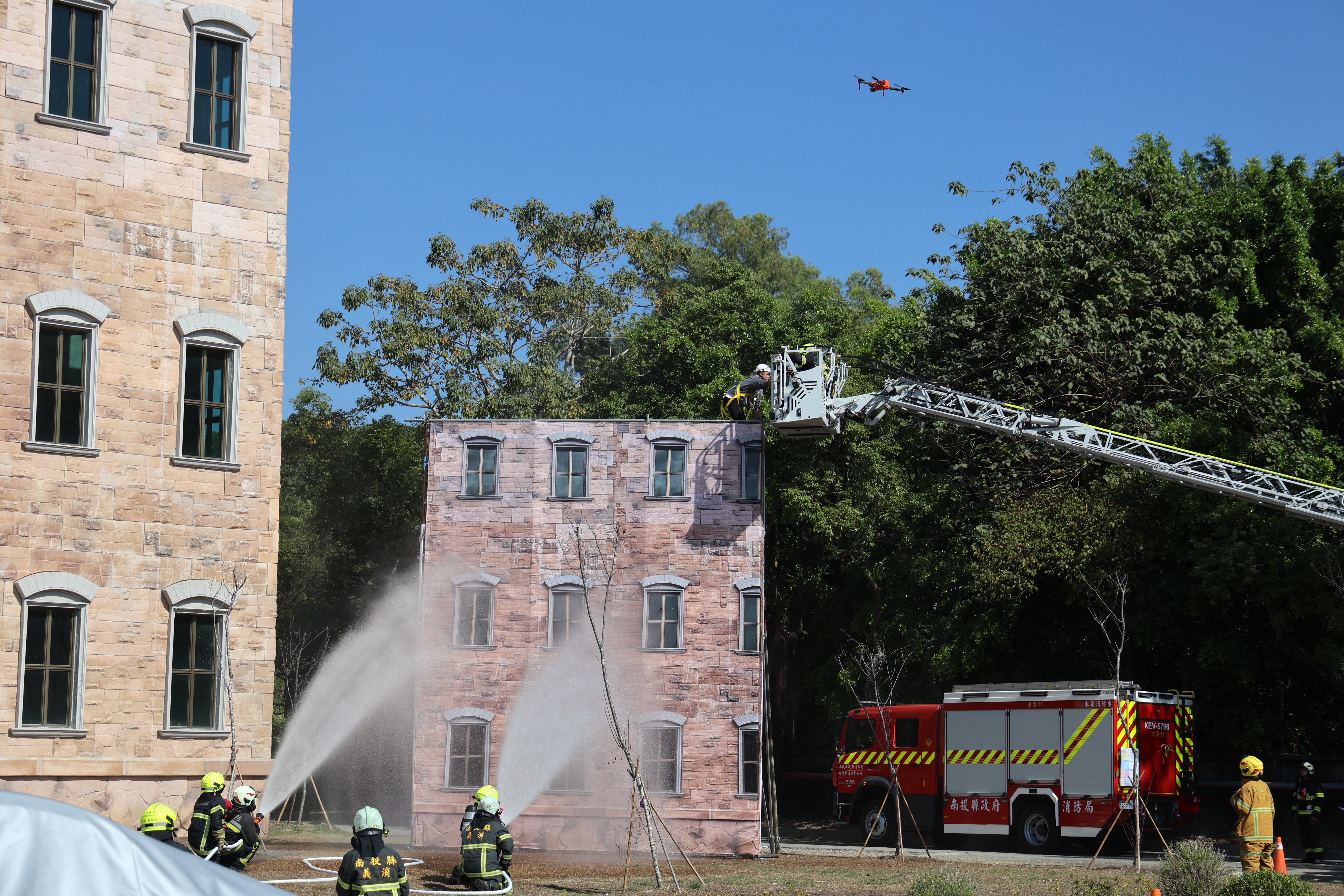 現場亦投入無人機進行高空火場偵查,將即時影像回傳指揮中心,並搭配消防機器人近距離噴水降溫協助滅火,不僅提升決策效率,更大幅降低消防人員深入火場的風險。南投酒廠「自衛消防編組」也全體動員,展現落實自主防災的高效與能力。