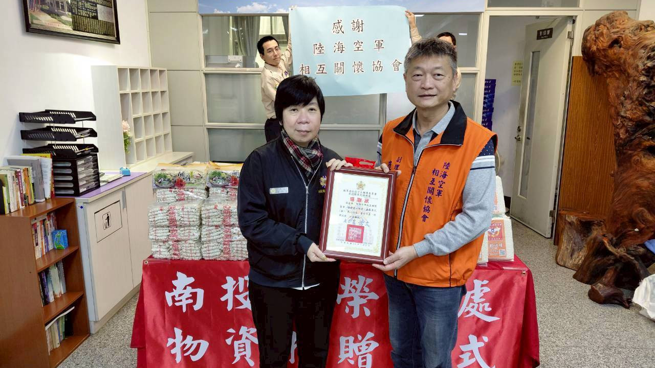 (特派員陳錦玲 南投報導) 社團法人陸海空軍相互關懷協會崔景惠副理事長與李朝家雲林分會長於本(16)日蒞臨南投縣榮民服務處,捐贈愛心麵食一批,關懷南投縣清寒榮民眷家庭,以具體行動傳遞冬日暖意。當日由處長王怡文代表接受,並回贈感謝狀表達謝忱,感佩協會長期致力公益、主動關懷榮民眷之善心義舉。