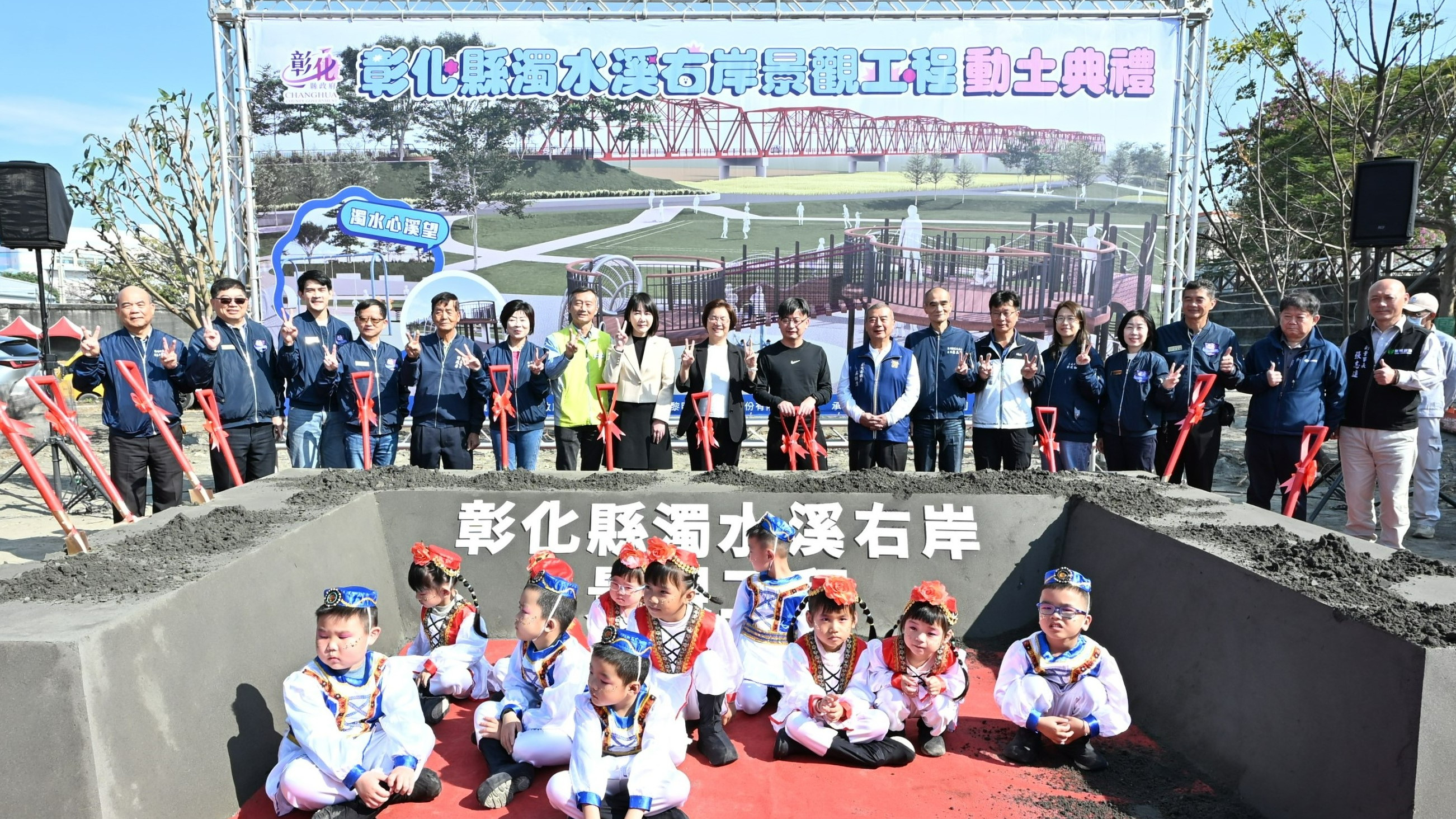 (記者邱暐茹 彰化報導)彰化縣政府持續推動特色景觀建置計畫,縣長王惠美於今(12)日至溪州鄉主持「彰化縣濁水溪右岸景觀工程」開工動土典禮。工程內容主要改善濁水溪右岸整體景觀並設置休憩設施,打造兼具生態、歷史、休憩與觀光機能的水岸風光,提供遊客與鄉親更友善且舒適的休閒場域。王縣長表示,感謝議長謝典霖及所有議員對預算的支持,以及經濟部水利署第四河川分署的促成與協助,同時感謝公所及地方村長共同努力,完成地方溝通及土地取得,順利推動本案工程。全案工程總面積約3.6公頃,總經費4,354萬5,000元,工期預計240日曆天。