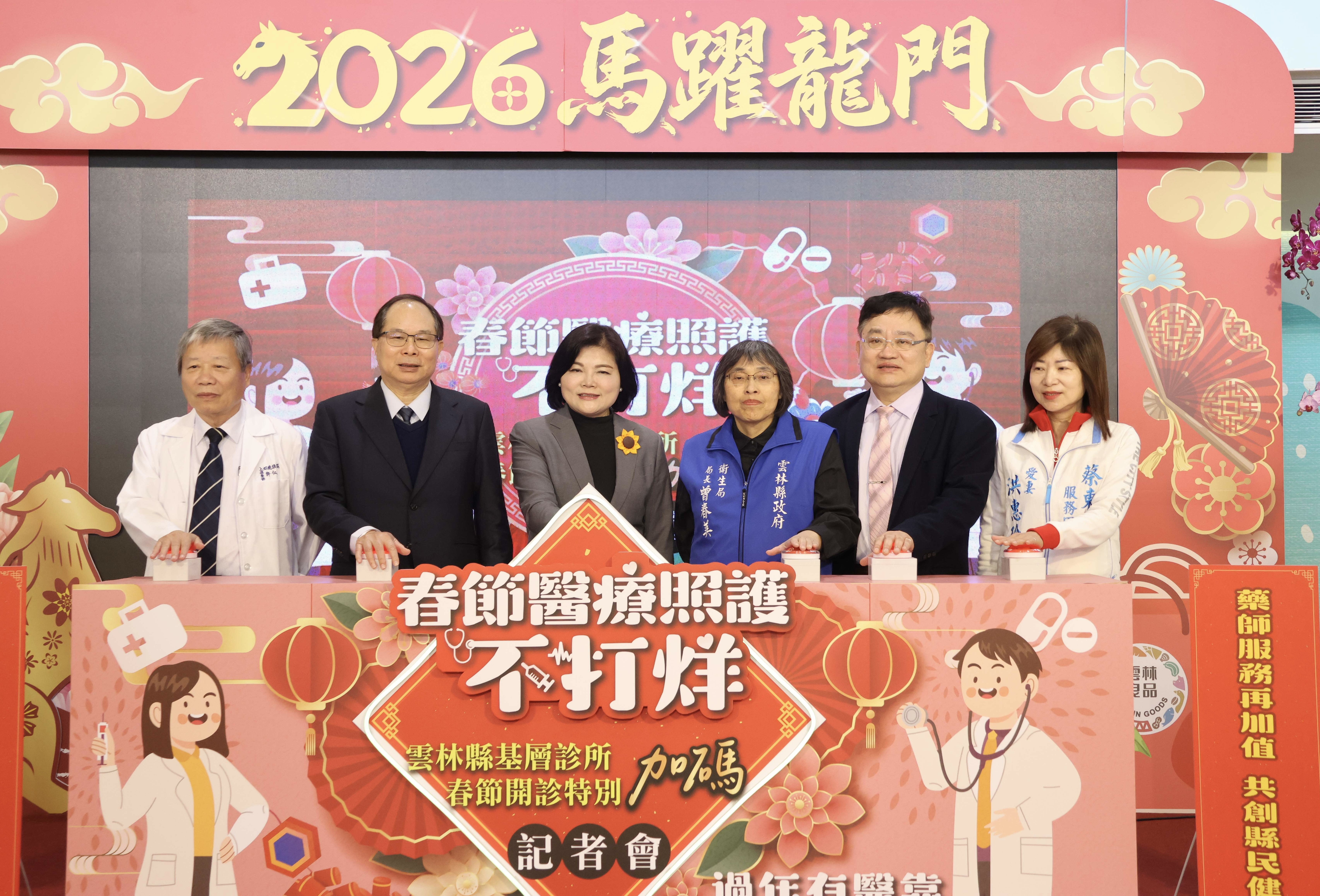 雲林縣長張麗善表示,往年春節期間基層診所多有休診情形,導致輕症病患湧入醫院急診,今年感謝醫師公會號召診所響應,農曆初一至初三共有17個鄉鎮、50間診所提供190診次服務,其餘3個鄉鎮民眾也可就近前往鄰近鄉鎮市診所就醫。她呼籲鄉親,如有感冒或輕症疾病,請就近至基層診所就醫,不僅可把握黃金治療時間,也能減輕大醫院急診壅塞壓力,落實醫療分級與分流。