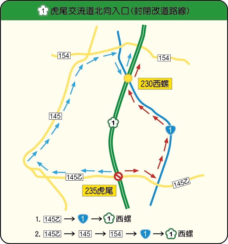 警方表示,國道部分路段於初三、初四下午實施高乘載管制,國道1號及國道3號北上匝道僅限3人以上小型車通行,另初三至初五白天封閉國1虎尾交流道北上匝道,請駕駛改行替代道路,同時提醒民眾,春節期間每日0時至5時國道暫停收費,民眾可彈性安排離峰時段出發,避開尖峰車潮。