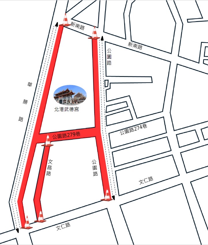 警方說,春節期間,北港朝天宮與北港武德宮周邊香火鼎盛,2月16日至22日每日8時至18時,朝天宮周邊道路規劃為行人徒步區,營造安全參香空間,另外,縣府同步推出「北港環鎮接駁公車」,鼓勵民眾將車輛停放於市區外圍停車場後轉乘接駁進入市區,有效紓解廟區停車壓力與交通壅塞問題。