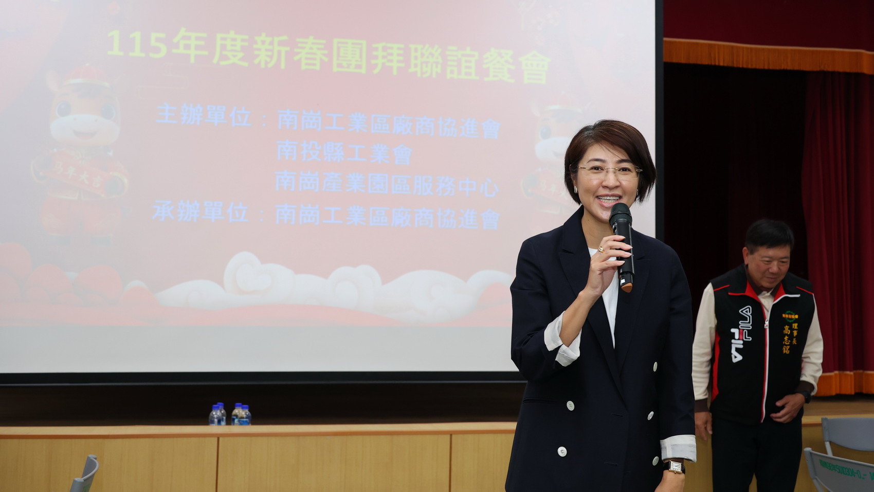 (特派員廖廣學 南投報導)南崗工業區廠商協進會、南投縣工業會、南崗產業園區服務中心26日在南崗會堂舉辦「115年度新春團拜聯誼餐會」,縣長許淑華到場祝福廠商新春開工順利,期盼企業界與縣府合作,在因應關稅挑戰的同時,也能達到勞資雙贏的目標。