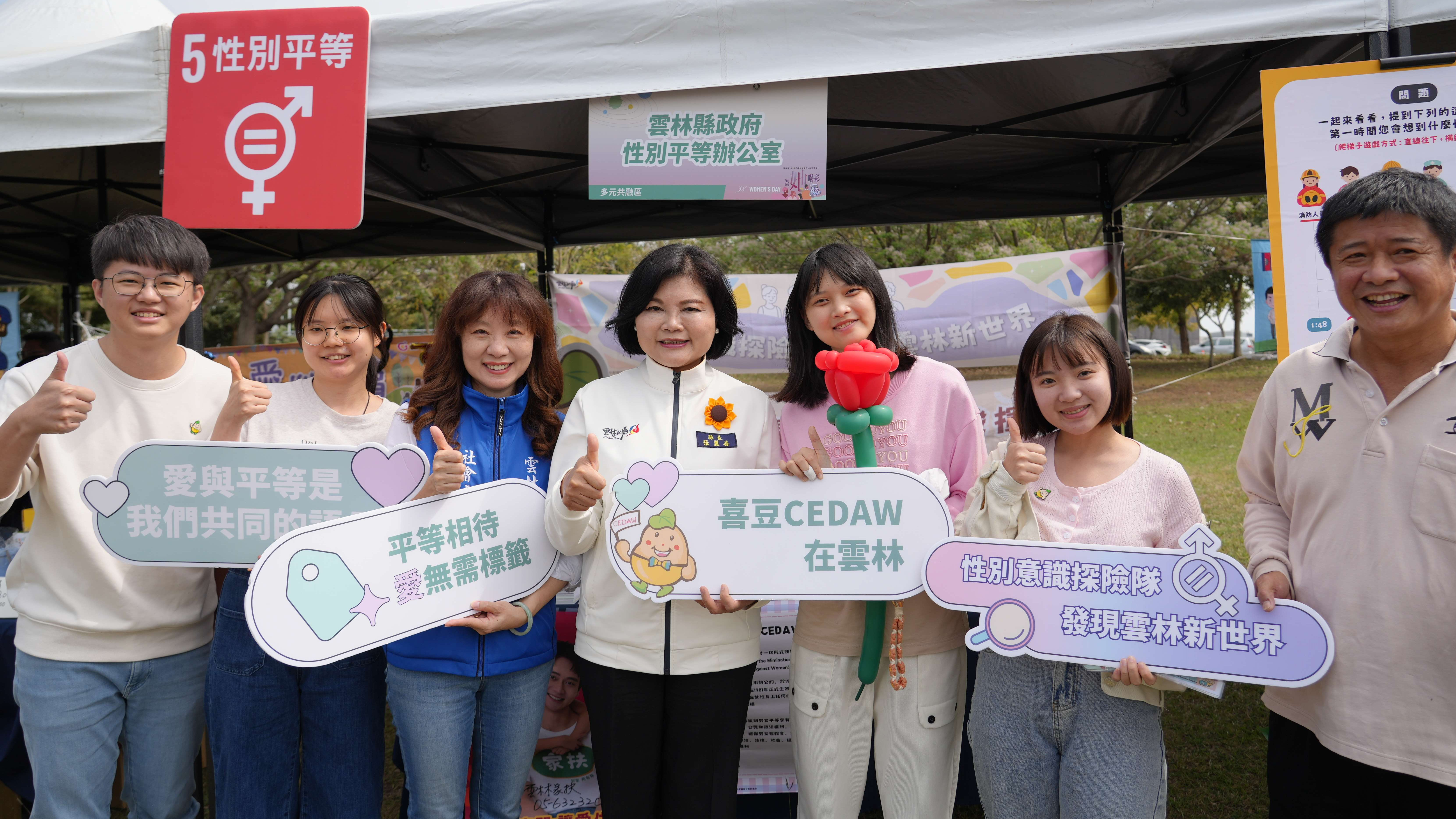【特派員林昱宏雲林縣報導】雲林縣政府響應國際婦女節,8日於斗六藝術水岸園區舉辦「雲林縣115年婦女友善月-她日好市 Cheer HER Life 市集」,結合女性創業、市集展售與性別平權倡議,並表揚性別友善場域推動單位,縣長張麗善、社會處長林文志、斗六市長林聖爵及斗六市民代表會副主席黃尤美等人到場參與,祝福所有女性朋友天天都能如婦女節般開心幸福。