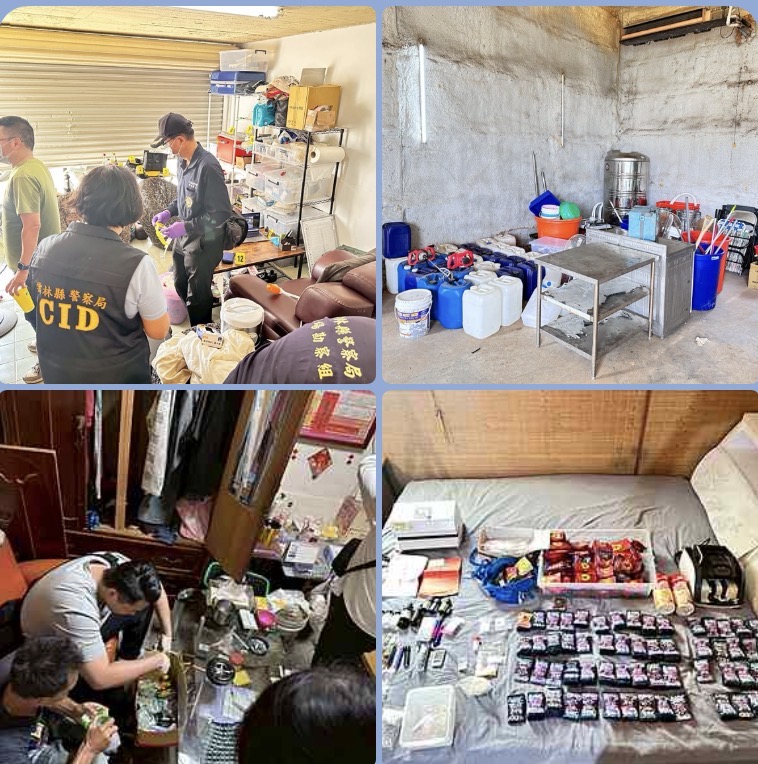 警方指出,該製毒集團為躲避警方查緝,頻繁更換車牌與車輛掩護行蹤,並多次轉移製毒據點,先後在嘉義縣梅山鄉民宅活動,最後轉移至民雄鄉一處民宿內,部分製毒器具則另行藏放在雲林縣東勢鄉一處倉庫,企圖以「觀光民宿」作為掩護,暗中從事毒品咖啡包原料製造、分裝與販售等一條龍作業,藉此牟取高額不法利益。