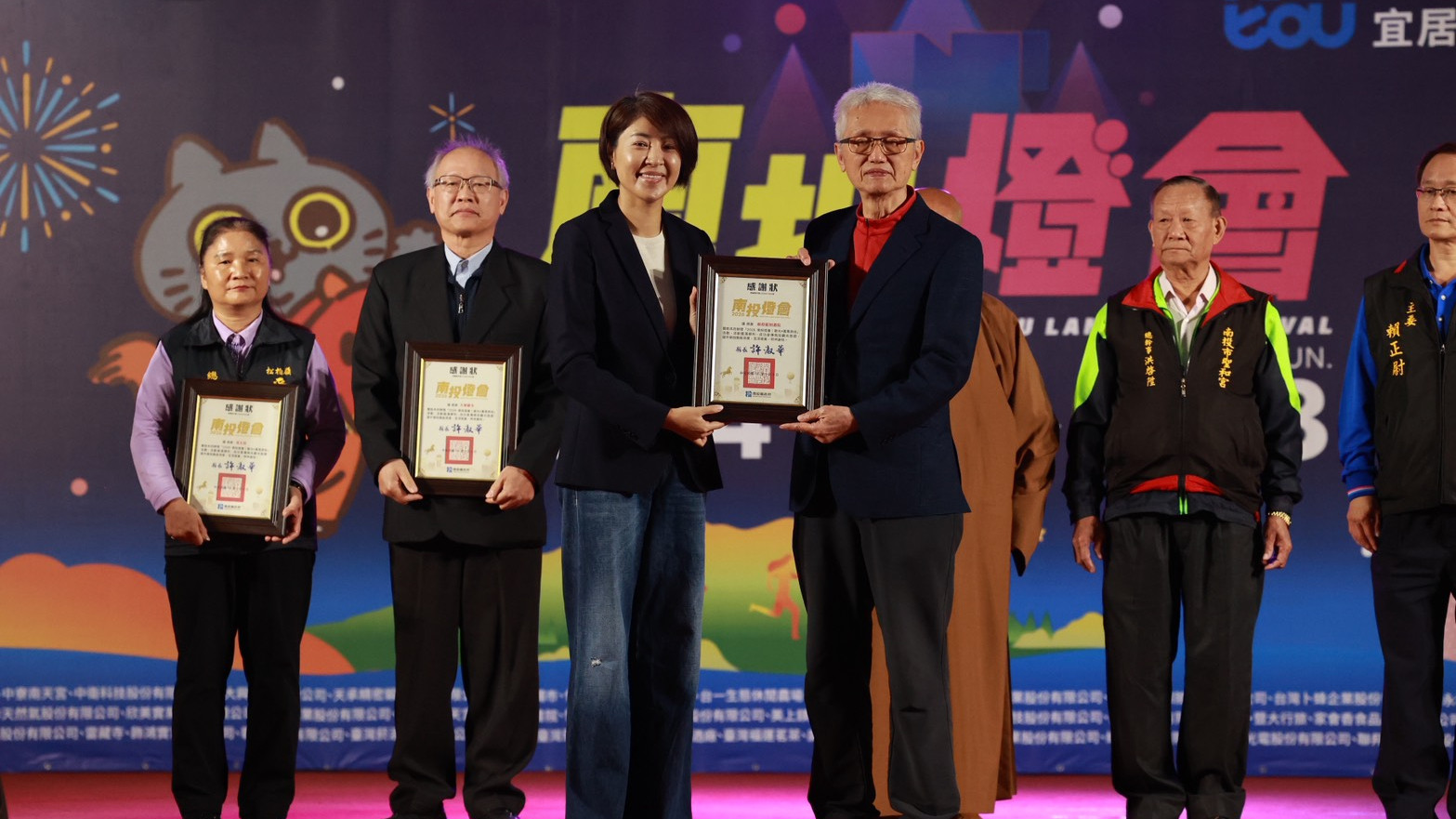 南投燈會閉幕,熱熱鬧鬧。許縣長除了到場發紅包,和民眾互動,還親自致贈感謝狀給贊助活動的企業、團體及宗教寺廟等單位。立委游顥、縣議員全文才也到場共襄盛舉。