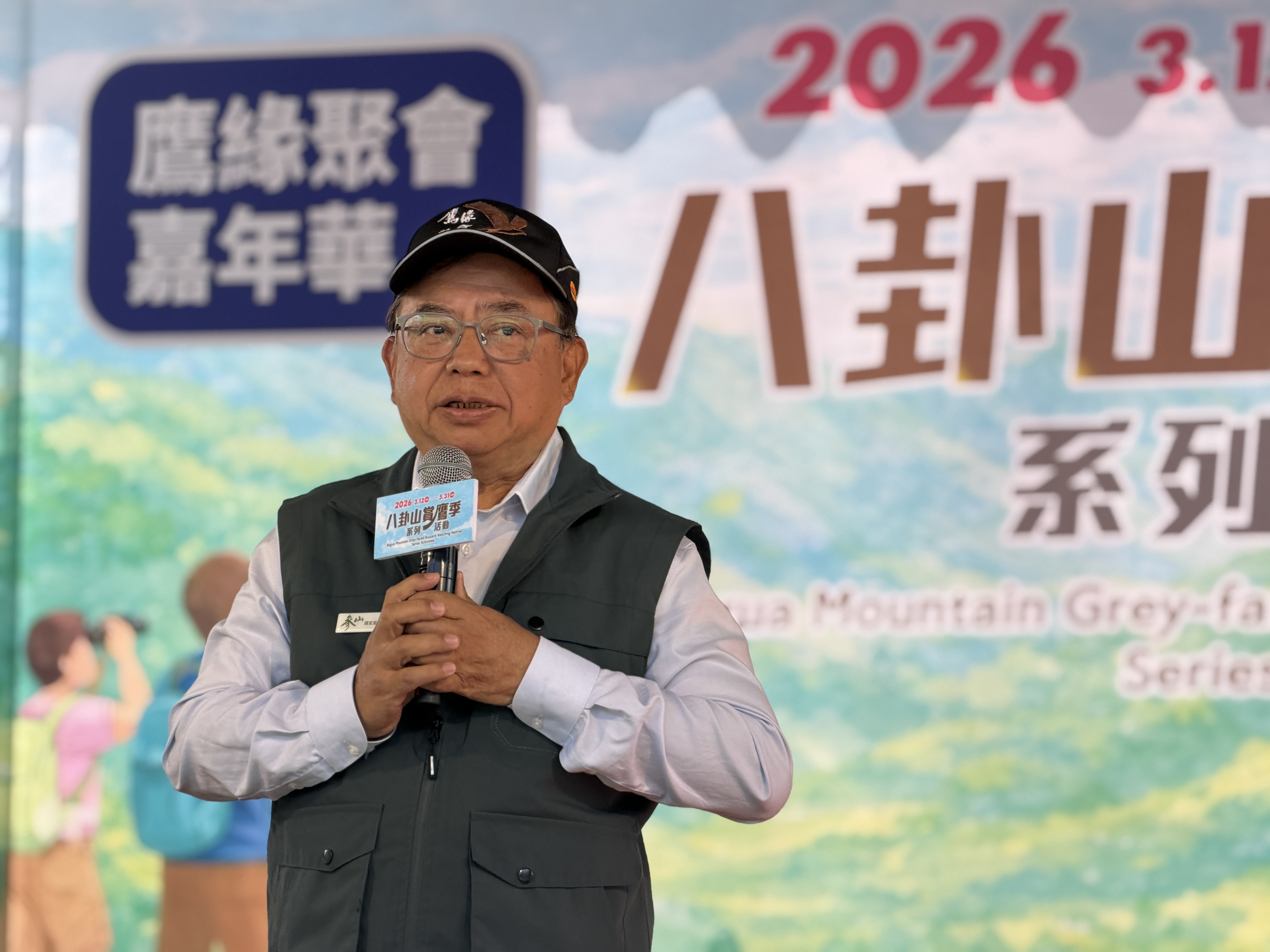 參山處長曹忠猷指出,「鷹緣聚會」賞鷹活動今年已邁入第20年,南投市永興社區長年推廣賞鷹生態教育,成為地方重要的春季生態盛事。本次活動特別結合賞鷹導覽與嘉年華活動於橫山賞鷹平台舉行,讓民眾能在最佳視野點近距離觀察灰面鵟鷹盤旋天際的壯觀景象,同時透過專業導覽與互動活動,深化民眾對候鳥遷徙與生態保育的認識。