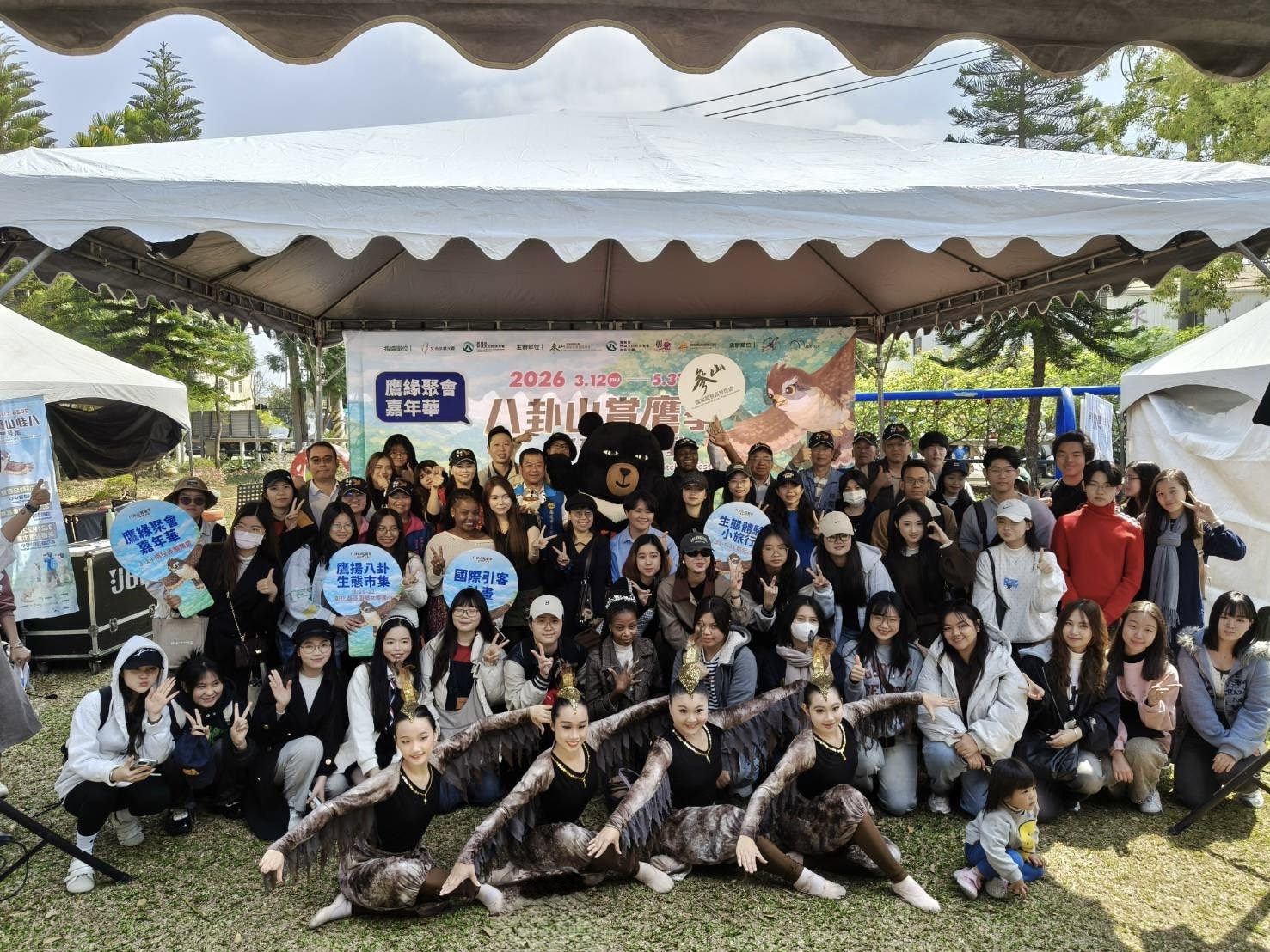 參山處今年也特別邀請在臺國際學生參與賞鷹活動,來自新加坡、馬來西亞、日本、韓國、印尼、越南、菲律賓、香港、非洲、秘魯、緬甸等地逾80位學生透過專業導覽,深入認識中臺灣八卦山脈豐富的生態旅遊資源,以及臺灣長期推動生態保育的成果。來自馬拉威的Isaac學生表示,雖然今天未見大量鷹群過境,但透過導覽老師的解說與現場活動,讓自己更了解候鳥遷徙與自然環境的關係,也感受到臺灣對生態保護的重視;來自越南的越詩學生則分享,第一次參加且能與不同國家的學生一起參加戶外生態活動,認識在地文化與自然景觀,是非常特別且難忘的體驗。