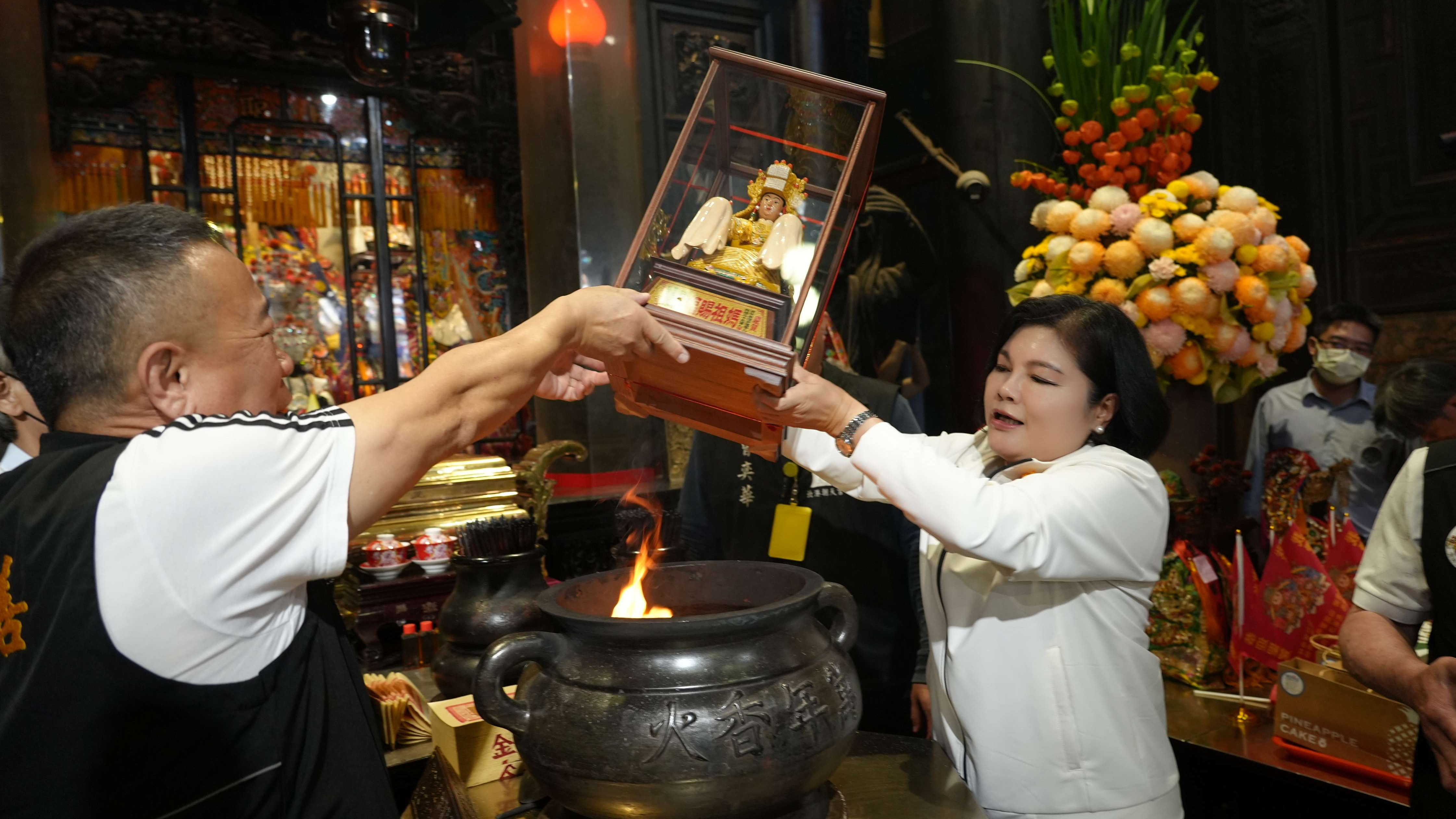 協會表示,白沙屯媽祖進香為台灣極具代表性的宗教文化活動,每年皆準備豐富結緣品與香燈腳分享,今年由朝天宮會茂法師主持祈福儀式,為各項文創結緣品加持,盼在媽祖庇佑下,為信眾與地方帶來平安與祝福。