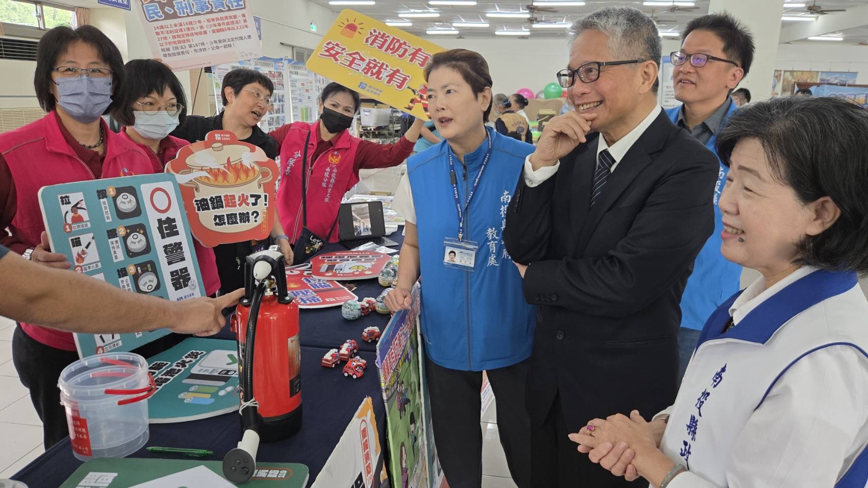環保防災勇士pk賽,場內緊張,場外熱鬧。慈濟與南投縣政府衛生局、環保局、消防局、社會及勞動局與教育處,設有宣導闖關的攤位,提供防災、防毒、愛健康、兒少保護資訊、緊急救護等進行宣導與體驗,同場舉辦「校長感恩茶會」,邀集各校校長、師長及慈濟代表共聚一堂。會議主題為「推動校園深耕與永續發展素養」,並安排人文飄香、品茗交流與環保教育成果分享,期盼透過對話與交流,攜手為校園永續教育寫下新的篇章。