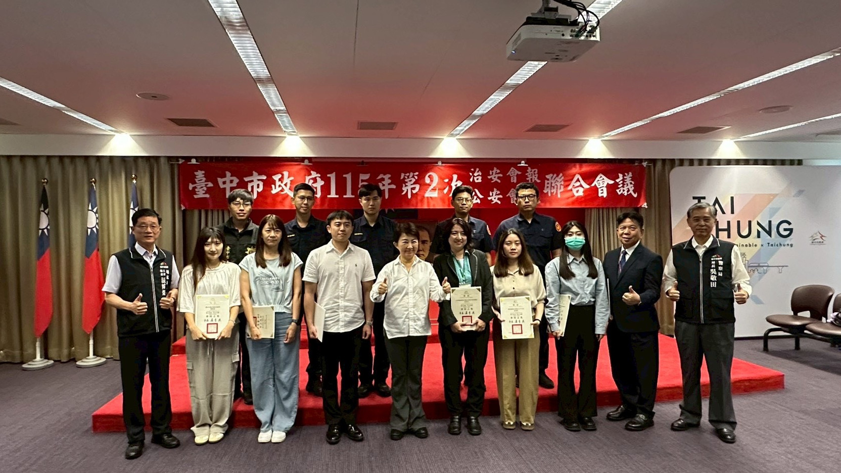 盧市長表示,臺中市治安工作一直以來表現都非常亮眼,市政團隊也會繼續努力,秉持專業、熱忱、有溫度的服務持續精進,為市民打造更宜居的城市願景,守護治安平穩的成果。