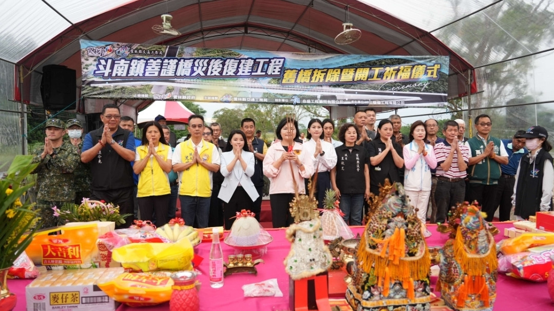 (記者鍾進森 雲林報導) 雲林縣斗南鎮善謹橋因橋體受損,自113年9月封閉迄今。雲林縣政府23日舉行舊橋拆除暨重建開工祈福儀式,縣長張麗善表示,善謹橋連接斗南鎮新興里與嘉義縣大林鎮三角里,是地方重要交通要道,肩負居民通勤與農產運輸功能,期盼工程如期如質完成,讓鄉親早日恢復安全通行。