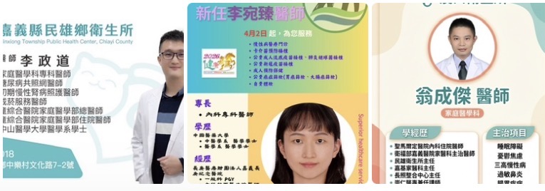 衛生局表示,相關醫師學經歷與門診時刻表已公布於各衛生所官網,方便民眾查詢與安排就醫;目前布袋鎮、義竹鄉、朴子市及竹崎鄉等4處衛生所仍有醫師職缺,誠摯邀請有志投入公共衛生服務的醫師加入,共同守護嘉義縣民健康。