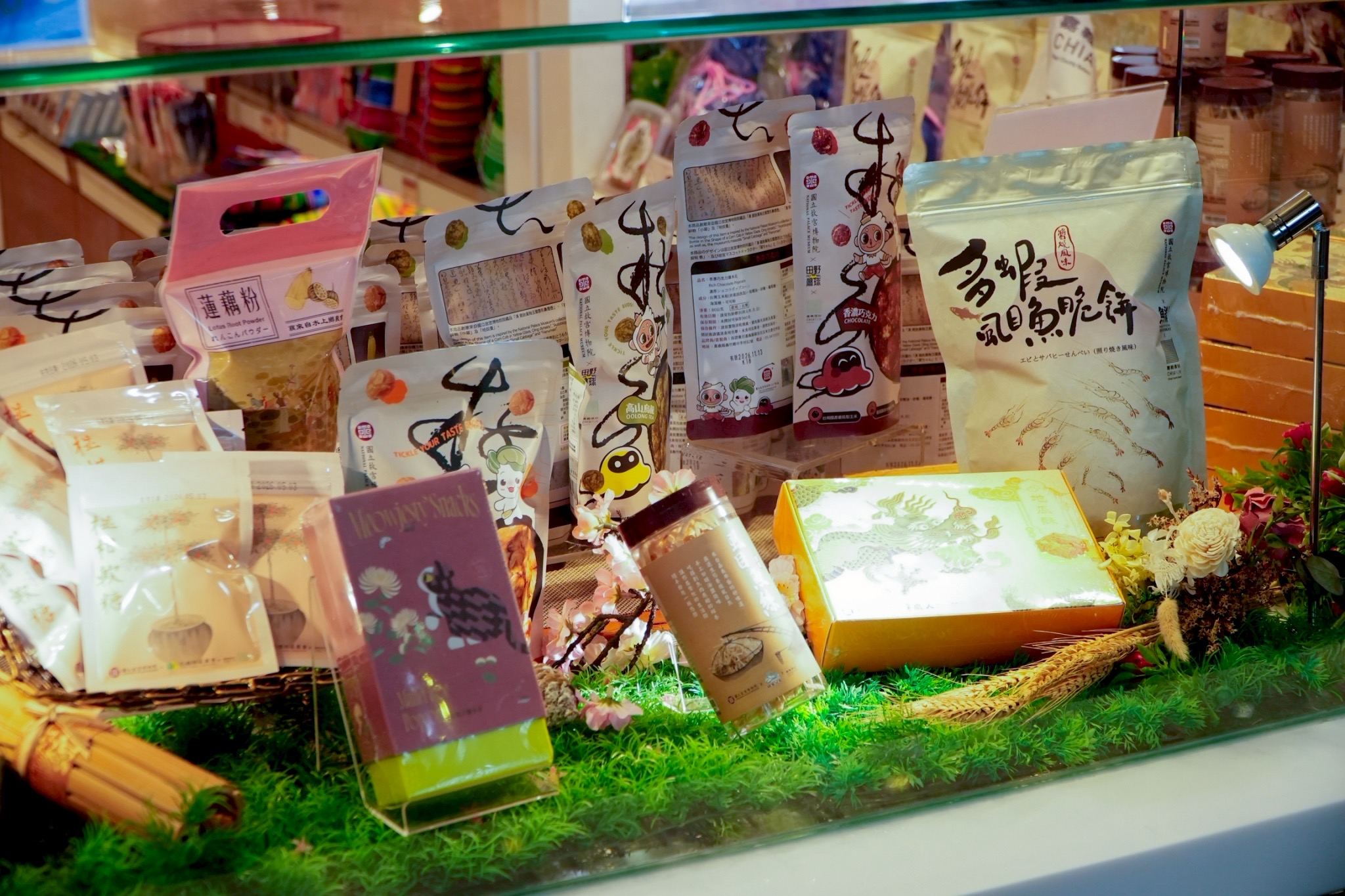 縣府指出,此次專區上架多款嘉義優鮮與故宮聯名商品,透過故宮典藏文物的設計轉譯,呈現嘉義各鄉鎮農產特色與加工創新,包括義竹玉米爆米花、梅山燒烤梅、竹崎椪柑軟糖、水上蓮藕粉、布袋虱目魚絲、虱目魚白蝦脆餅、太保黃金地瓜酥、烏魚子爆米花等,產品多元、風味鮮明。