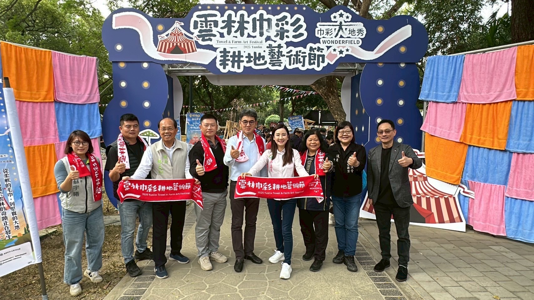 【記者林昱宏雲林縣報導】「2025雲林巾彩耕地藝術節 WONDERFIELD」13日在虎尾同心公園開幕,由雲林縣毛巾產業科技發展協會與雲林縣街頭藝人協會共同主辦,邁入第七屆的巾彩節以親子共遊與毛巾產業推廣為核心,首日吸引大批民眾入園,現場熱鬧滾滾。