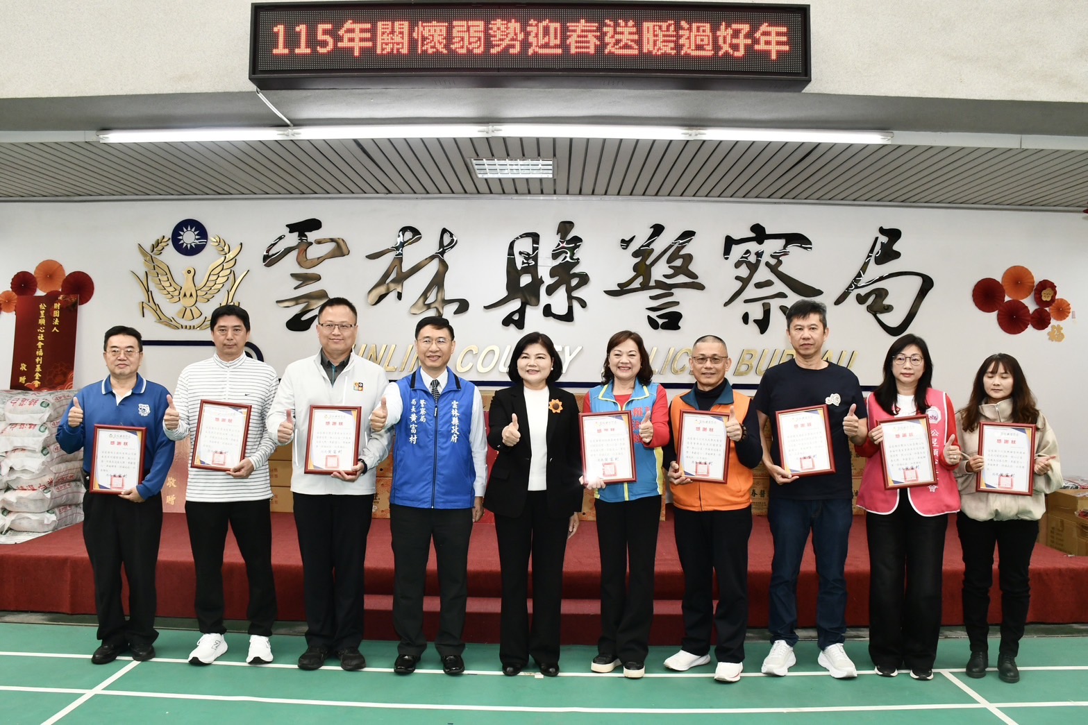 縣警察局表示,本次活動獲得眾多捐贈單位與善心人士熱情支持,包括縣議員賴淑娞、元進莊企業股份有限公司、瑞春醬油有限公司、大北勢天聖宮慈善會、新豐國際開發有限公司、台塑企業、斗六佳興補習班、味王公司、豪祥億農產行、昶典工業、松昱順心社會福利基金會及欣沺檸檬武場等,多數單位長期投入公益行列,其中部分夥伴更連續支持本活動長達25年,長年將愛心送至弱勢家庭與獨居長者身邊,善行義舉令人敬佩。