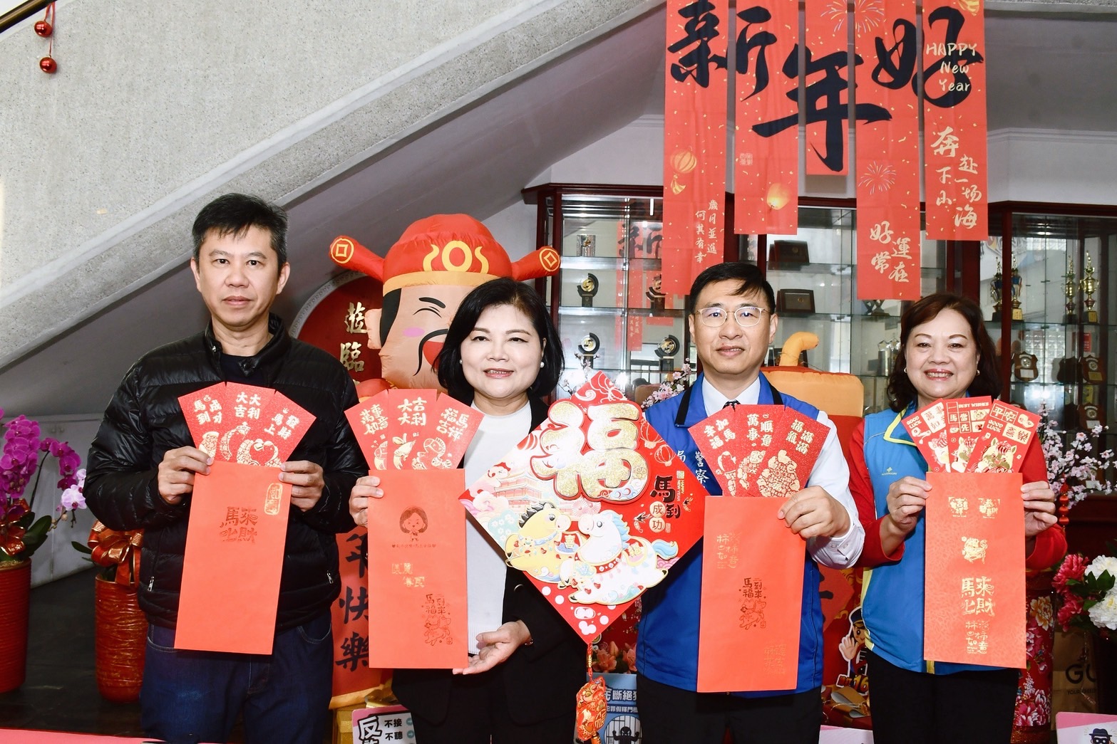 黃富村表示,值得一提的是,活動現場特別安排「個人化紅包袋」體驗活動,邀請縣長與與會貴賓共同參與,透過可愛印章搭配喜氣洋洋的馬年圖案與祝福語,親手為紅包袋蓋上專屬祝福,象徵關懷與好運一同傳遞,為新春佳節提前注入濃厚人情味。