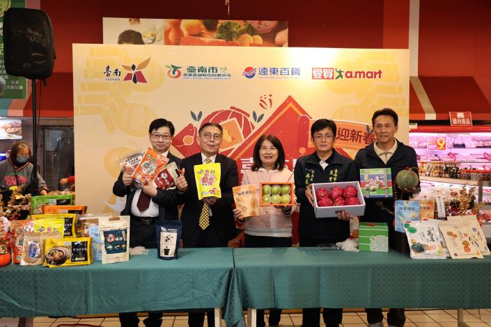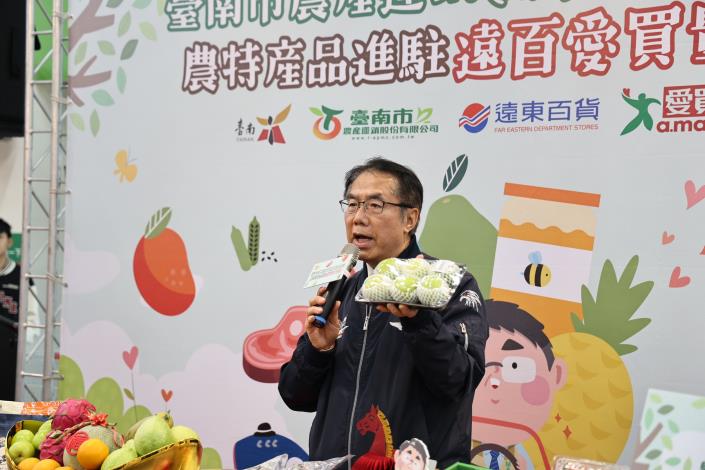 【特派員林昱宏台南—台北報導】為拓展台南優質農產品銷售通路,臺南市農產運銷股份有限公司攜手遠百愛買量販合作,精選芭樂、小番茄、火龍果、洋香瓜等台南鮮果,以及多項農漁特產品,即日起進駐全台13家愛買量販門市同步販售,讓全台消費者都能就近選購產地直送的新鮮好物,台南市長黃偉哲7日特別北上出席板橋愛買上架記者會,並與夫人劉育菁一同向北台灣民眾推薦「台南尚青」農特產品。