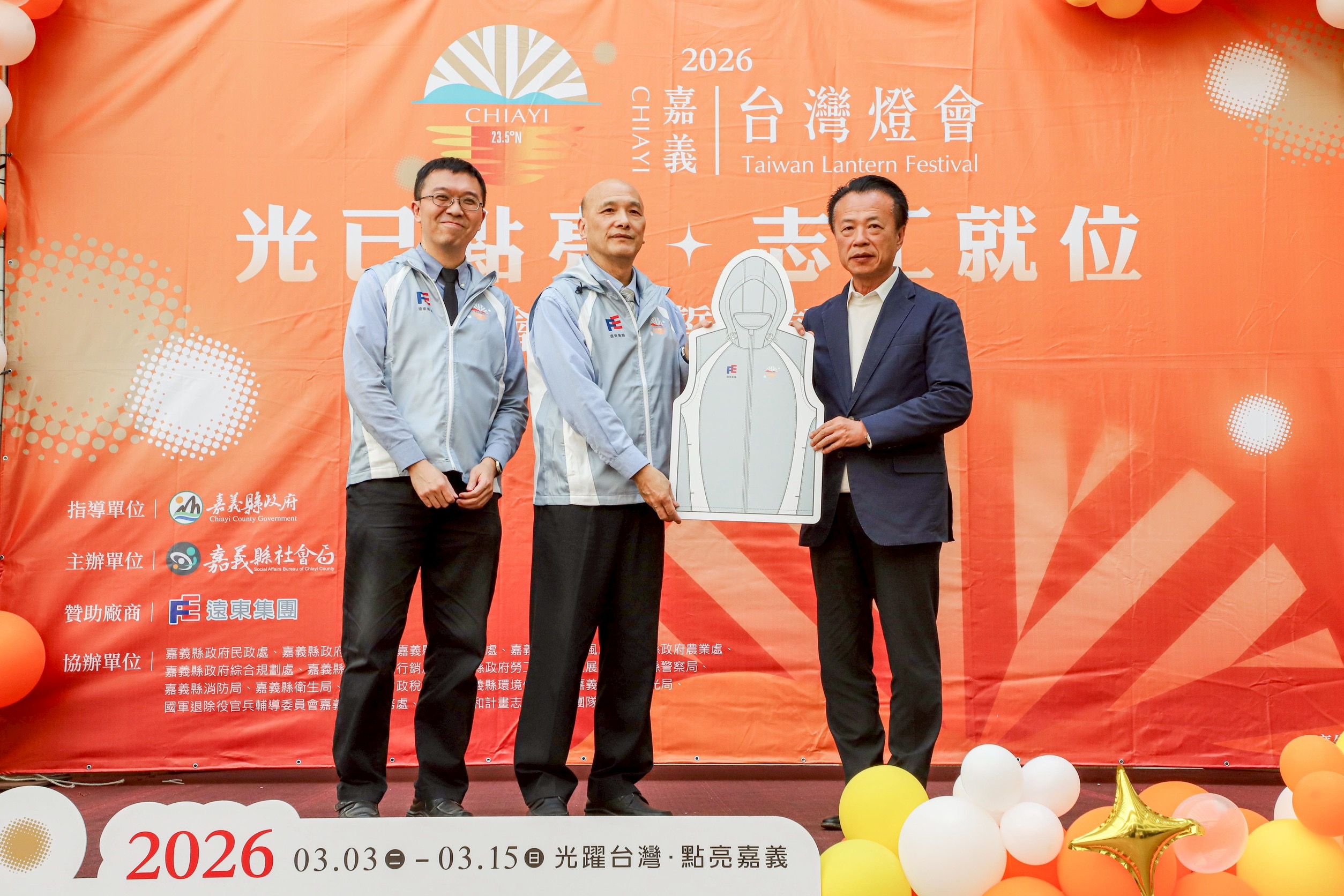 縣政府說,此次燈會志工背心由遠東集團贊助,出席代表嘉惠電力股份有限公司總經理吳水在表示,遠東集團響應「2026台灣燈會在嘉義」,希望透過實際支持,為燈會成功盡一份心力。