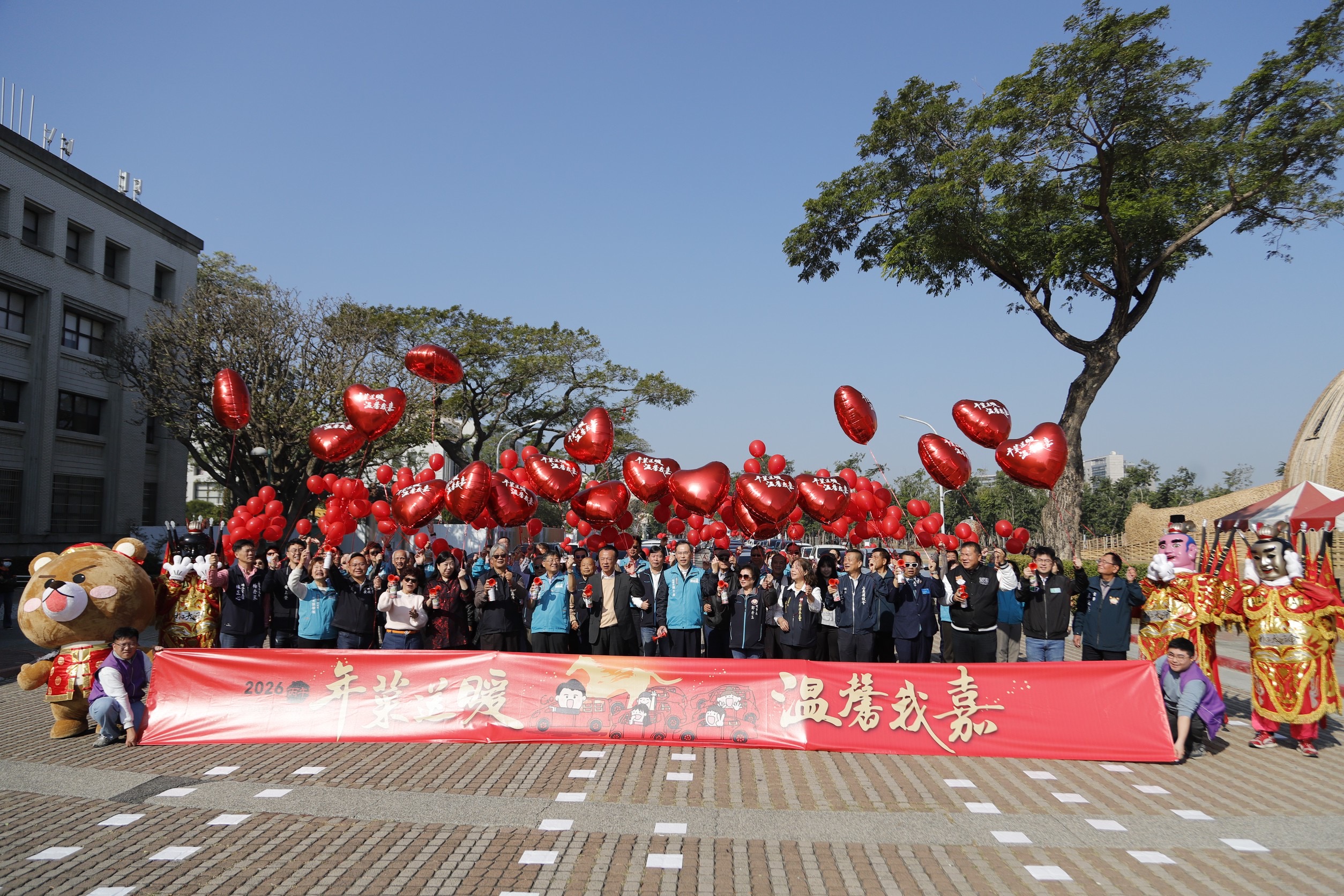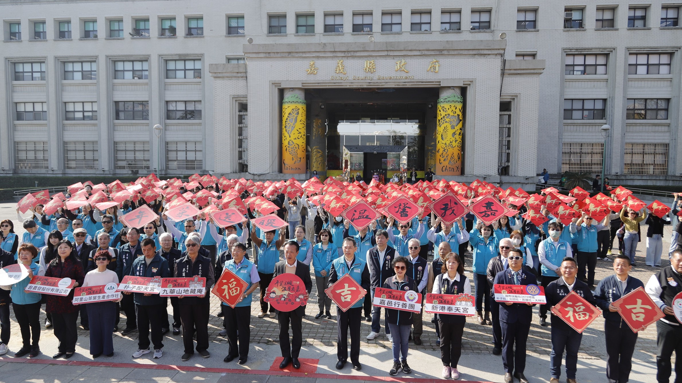 嘉義縣政府指出,上午縣府於前廣場舉行出發儀式,志工們將年菜逐一上車,整齊併排形成綿延車隊,翁縣長與社會各界代表揮手送行,期盼將溫暖送到每一戶需要關懷的家庭,翁縣長隨後前往水上親送年菜、貼春聯,向鄉親道賀新年愉快。