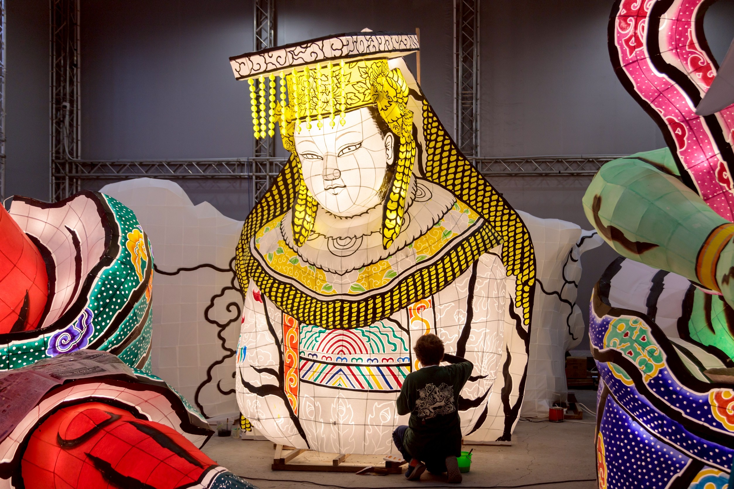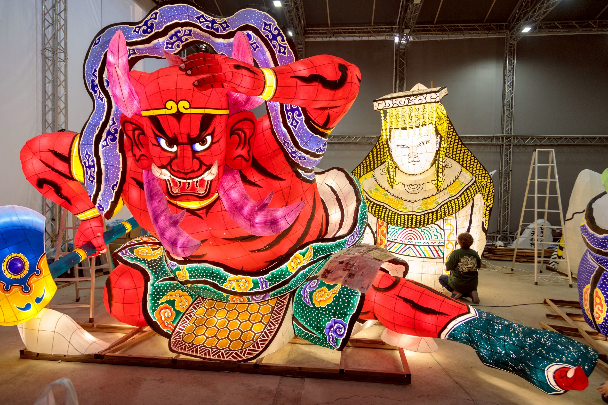 文觀局說,睡魔源自日本東北重要祭典—青森睡魔祭,以立體巨型武者與神話人物造型聞名,融合繪畫藝術、紙紮技法、骨架結構與燈光設計,是兼具力量與美感的傳統藝術形式,此次睡魔師跨海來台,完整呈現最道地製作工法,不僅提升燈會專業層次,也深化大眾對睡魔藝術文化精神與職人工藝價值的理解。