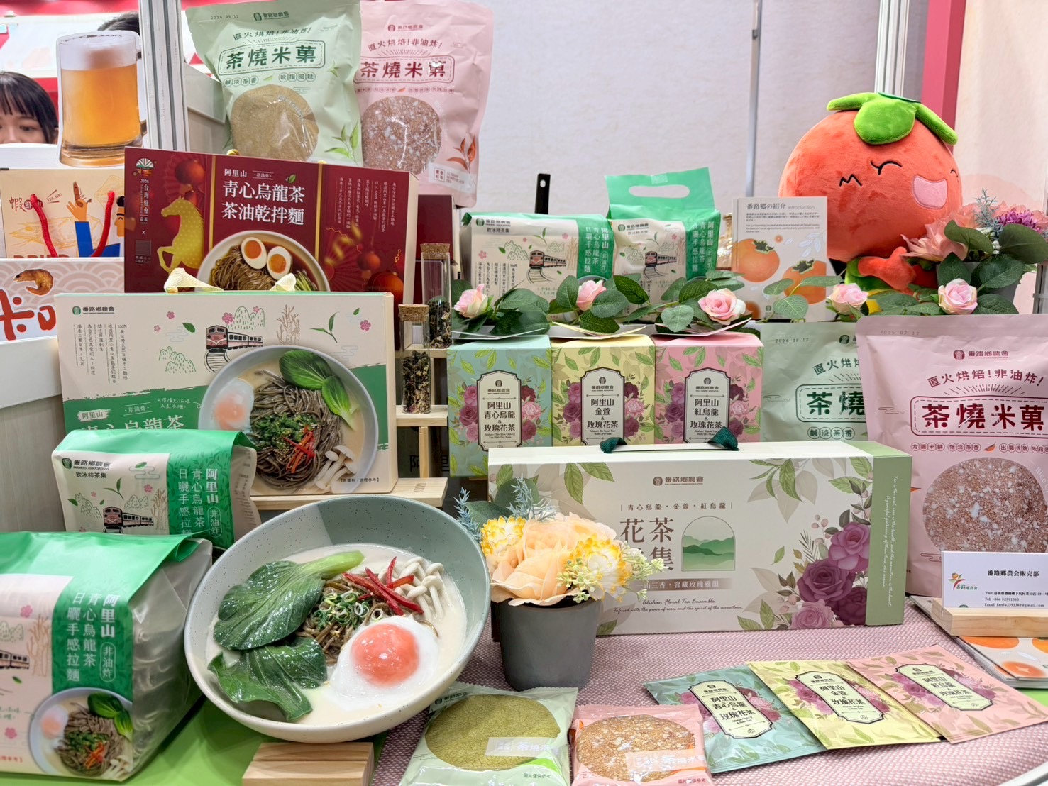 【特派記者林昱宏報導】番路鄉農會再度前進日本東京國際食品展(FOODEX JAPAN),成為今年台灣九家參展農會之一,主打以阿里山茶開發的特色食品,其中「阿里山青心烏龍茶拉麵」與「茶燒米菓」成為展場焦點,不僅吸引國際買家試吃關注,也帶動多家食品通路業者洽詢合作,展現番路農產拓展海外市場的實力。