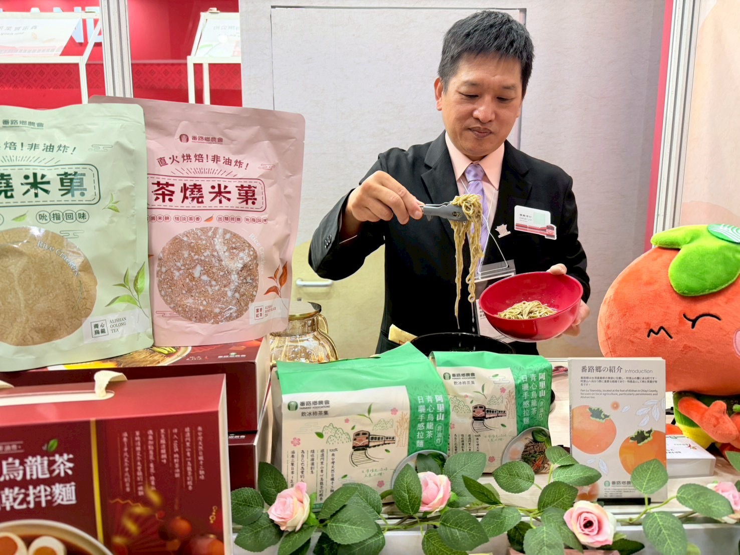 番路鄉農會表示,「阿里山青心烏龍茶拉麵」在展場特別受到關注,去年展會期間即有日本業者試吃後表達合作意願,今年在出發前更主動來信詢問是否參展,希望能進一步洽談合作,該業者也建議日本市場多為小家庭型態,小包裝商品較符合消費習慣,因此農會今年特別調整產品包裝,推出小家庭版本,讓商品更貼近日本市場需求。