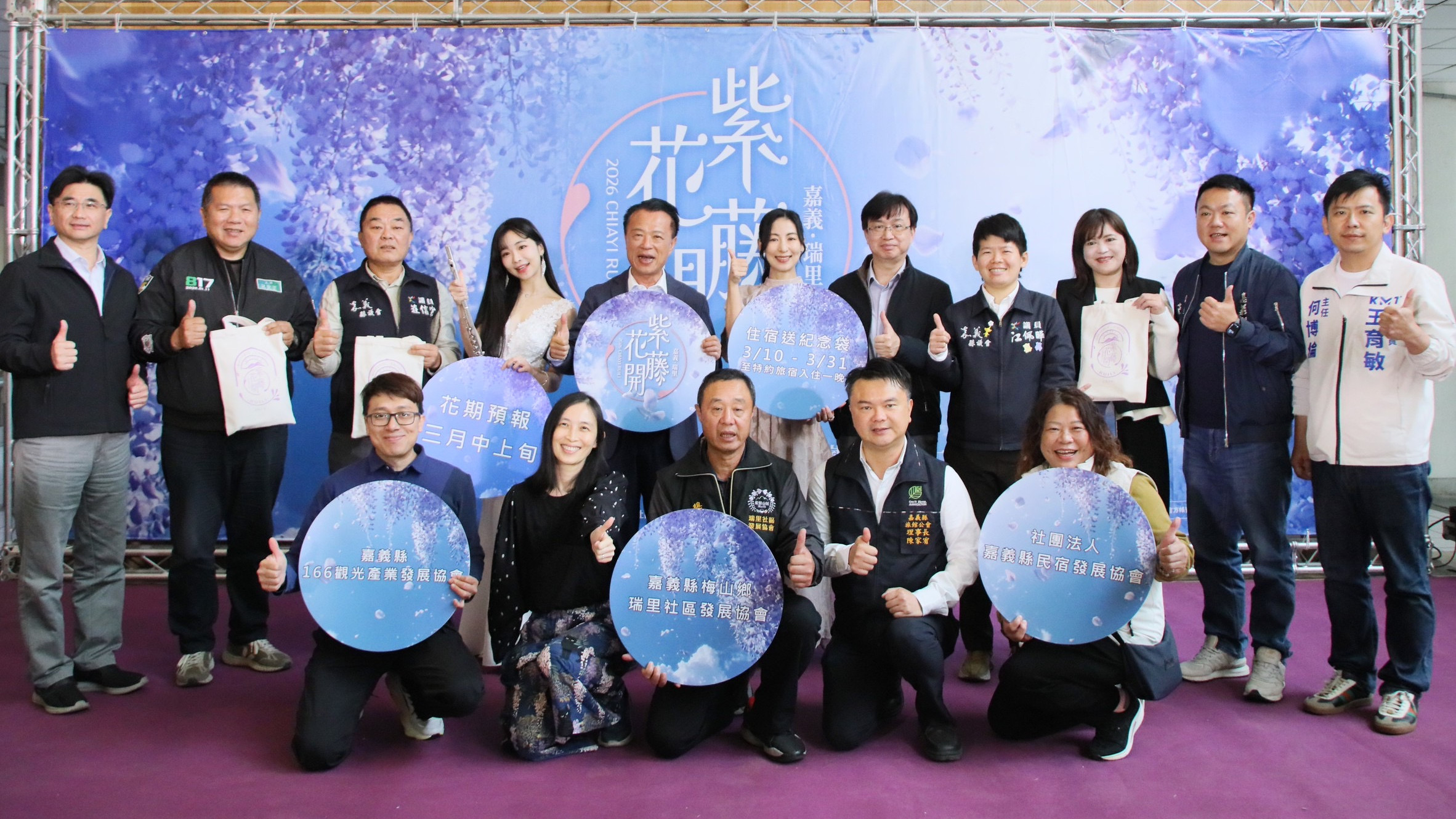 【特派員林昱宏嘉義報導】嘉義縣政府10日舉辦「2026瑞里紫藤花季」宣傳記者會,正式揭開春季紫藤花盛開序幕,縣長翁章梁邀請全國民眾,在參與2026台灣燈會之際順遊嘉義瑞里,白天漫步紫藤花海、夜晚暢遊燈會展區,感受春日限定的雙重旅遊魅力。