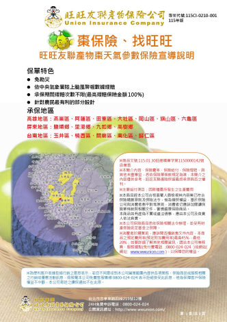 市政府強調,115年度「旺旺友聯產物棗天氣參數保險」自3月31日起至5月31日止受理投保,請農民把握期限踴躍參與,以保障生產收益並提升整體抗災能力。