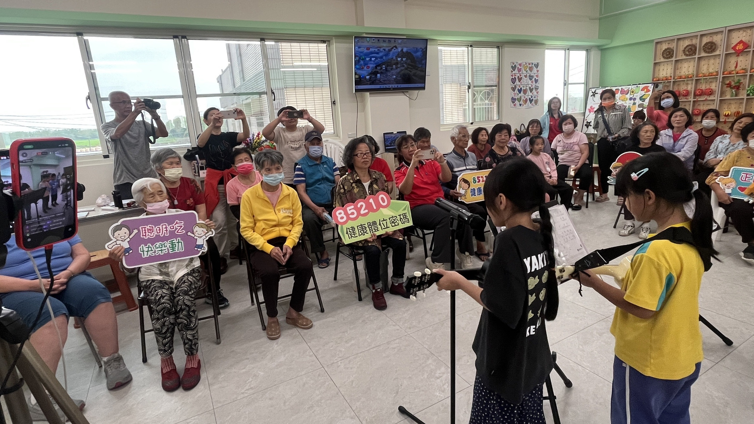 文教基金會表示,活動由二年級學生帶來活力十足的兒童律動揭開序幕,緊接著烏克麗麗社以輕快旋律演奏,並結合台語歌曲《腳踏車》演唱,熟悉旋律喚起長者回憶,不少長輩隨著節奏輕聲哼唱,現場氣氛溫馨熱絡,展現世代交流的美好畫面。