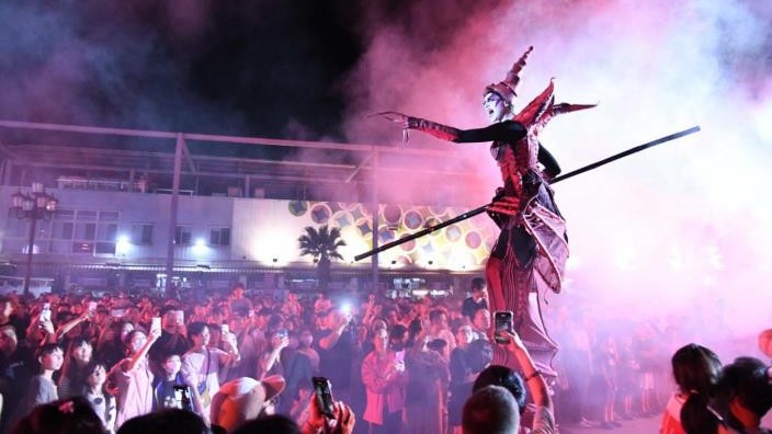 (記者邱佳喧 花蓮報導) 「2025花蓮國際藝術節」特別邀請享譽全球的荷蘭「近距離劇院 Close-Act Theatre」11月8至9日一連兩晚7時,在花蓮日出大道重慶市場旁帶來震撼全球的戶外沉浸式行動劇鉅作《恐龍入侵》,縣長徐榛蔚今(8)日晚間在文化局代理局長曾之妤及立委傅崐萁陪同下與鄉親們一起欣賞國際級的震撼演出。
