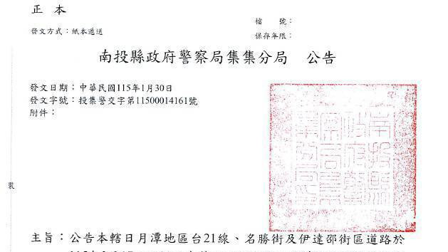 春節、和平紀念日」日月潭地區臺21線 、名勝街及伊達邵街區道路實施交通管制宣導