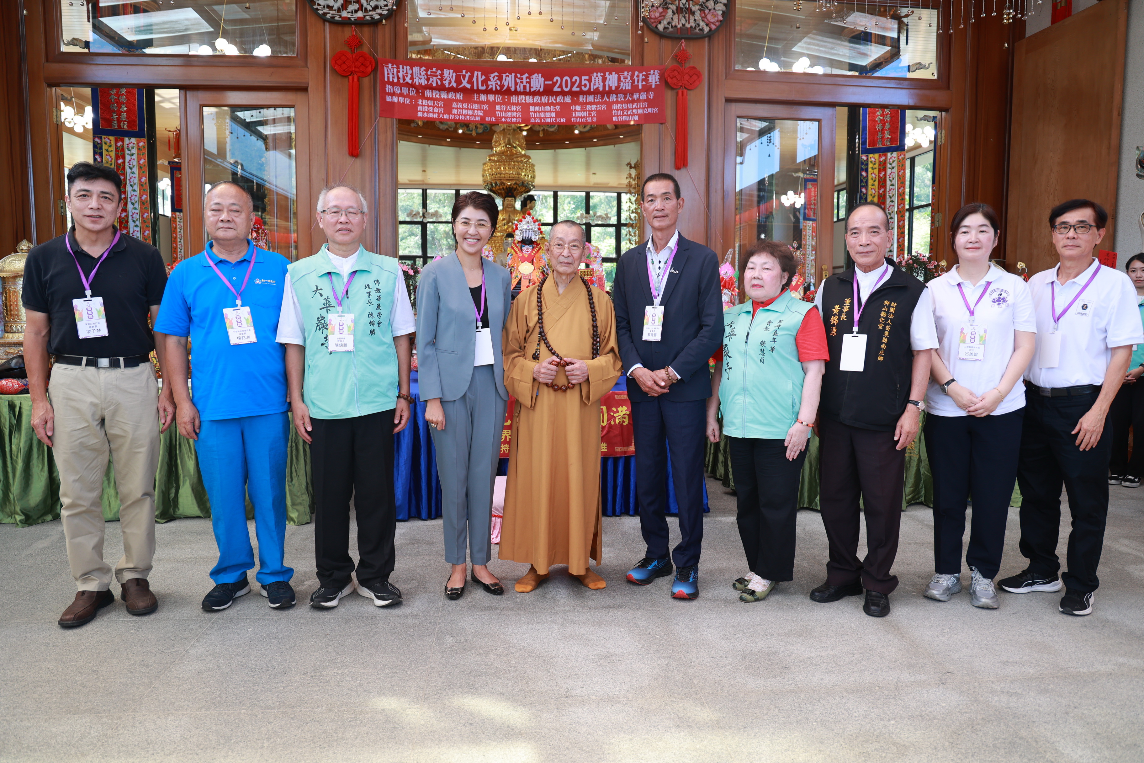 (特派員廖廣學 南投報導) 許縣長表示,大華嚴寺是鹿谷重要宗教信仰中心,舉辦多屆的萬神嘉年華,邀請各宮廟神尊齊聚一堂,讓信眾感受諸佛菩薩、萬神的庇佑及加持。相關活動不僅是信仰盛典,也讓南投宗教文化匯流,為地方觀光與產業注入新活力,活動還包括書法暨文物展,展現藝術之美,