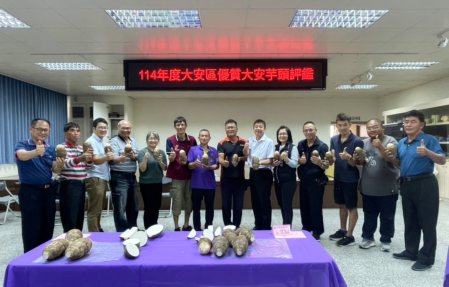 (特派員廖廣學 台中報導) 臺中市大安區農會23日上午九時假本會四樓舉行「114年度臺中市大安區優質芋頭評鑑」,共有四十餘組產銷班及芋農踴躍參與活動。以生鮮芋頭外觀及熟芋香氣口感等項目作為評比標準。藉由比賽廣邀各界農業好手較勁,最後由黃至青榮獲特等獎,實至名歸!