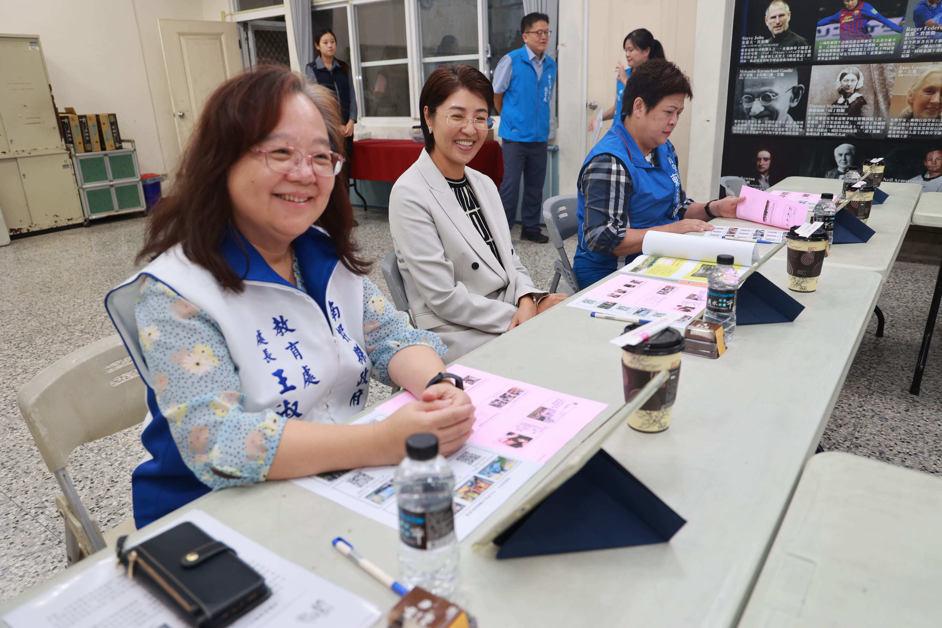 日落時分,許縣長一行到水里成城國小,校長謝濰萁反映,該校提供樂齡學習環境,但綜合教室電視牆、數位講桌、置物櫃等設備需更新,經費約93萬餘元;許縣長表示,成城國小不但是學生學習環境,也是社區民眾學習場所,對於學校建設,縣府樂於支持。