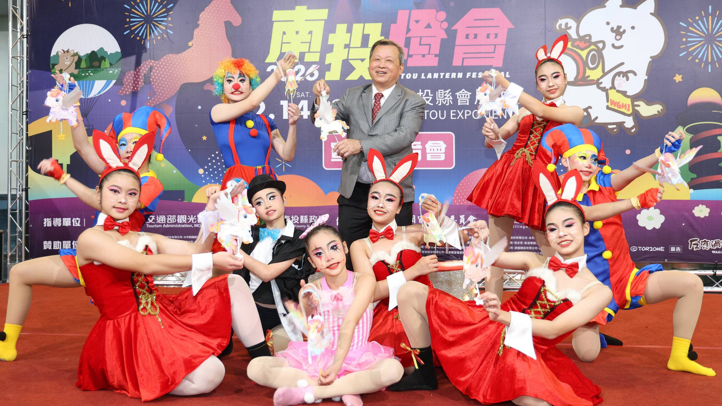 2026南投燈會記者會由簡淑茵舞蹈團結合馬戲特技的精彩「光影奔馳天馬行空」舞碼揭開序幕,日本人氣IP「反應過激的貓」大玩偶更和王副縣長大玩「卡哇伊」三連拍,金曲獎最佳原住民語歌手Kumu Basaw(姑慕.巴紹)並獻唱今年燈會主題曲「Sapah家」,除了縣府秘書長李良珠、副秘書長簡育民及各局處首長與王副縣長連袂出席外,縣議員張婉慈、林儒暘、南投市長張嘉哲及縣商會理事長廖俊哲及「九九峰氦氣球樂園」營運廠商薰衣草森林創辦人林庭妃等眾多來賓也共同推薦。