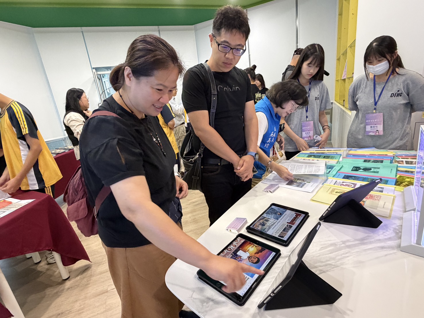 靜態展區同樣精彩,包含結合永續議題的「潘朵拉盒子」微縮模型、與漆藝大師王峻偉合作的漆藝作品,以及運用Notebook LM等AI工具創作的國際議題繪本與海報。學生更透過文字札記,與《悲慘世界》等經典文學對話,提煉出對社會正義與人道關懷的敏銳洞察。