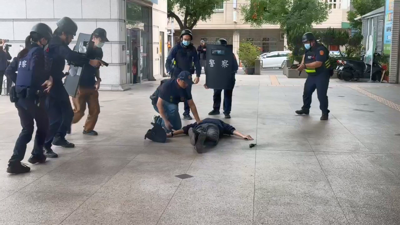 南投警分局結合臺灣銀行南投分行實施金融防搶演練,場面逼真