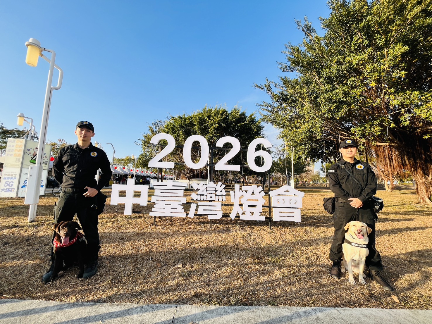 不只燈飾吸睛,燈會現場還有一群「默默守護大家的英雄」—臺中市政府警察局警犬隊,為了讓民眾能放心賞燈,特別派出偵爆犬KISS與緝毒犬DOTTIE進駐燈會現場,與員警一起執行安全維護任務,成為現場最可靠、也最受矚目的守護力量。
