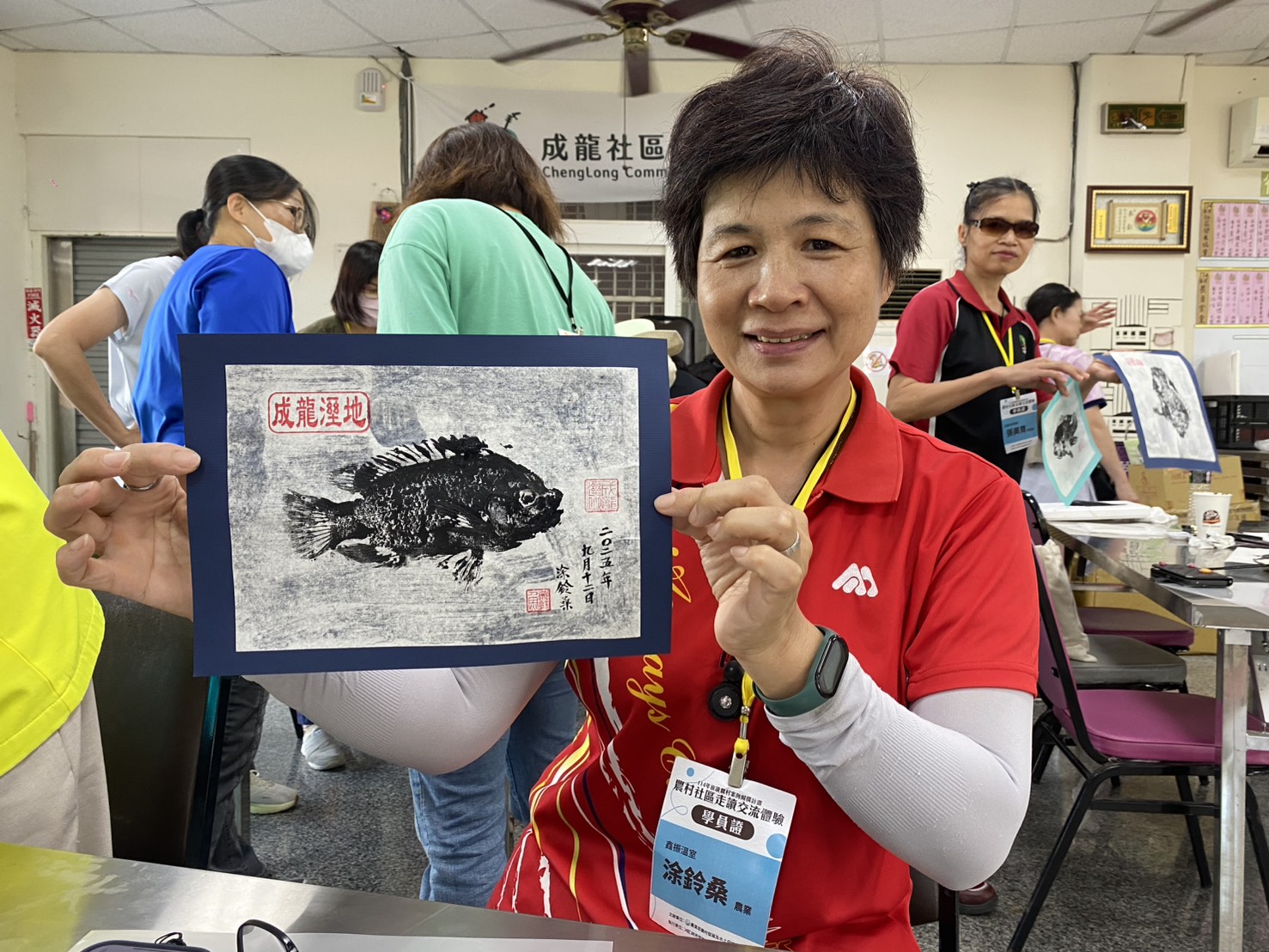 跨領域學員交流互動 感受海線農村漁鄉多元風情  除走讀社區特色營造景點,學員亦於活動中體驗結合鐵花窗藝術的鐵線苔球手作DIY、品嚐在地當季食材烹煮的海味風味餐,並前往成龍社區參與充滿文化氣息的魚拓體驗,認識雲林海線產業及金牌農村風情。農村水保署補充說明,期盼透過一系列的走讀體驗活動,跨足場域營造、景觀設計至居民參與,促進農村再生發展跨領域成員彼此交流、觀摩學習,激發日後社區發展的靈感與可能性。椬梧映月塘案例,並收錄於新出版之《旅讀農村III》中,歡迎國人透過本書一同認識臺灣農漁村新風景。(《旅讀農村III》線上閱讀連結:https://gov.tw/4Zf))