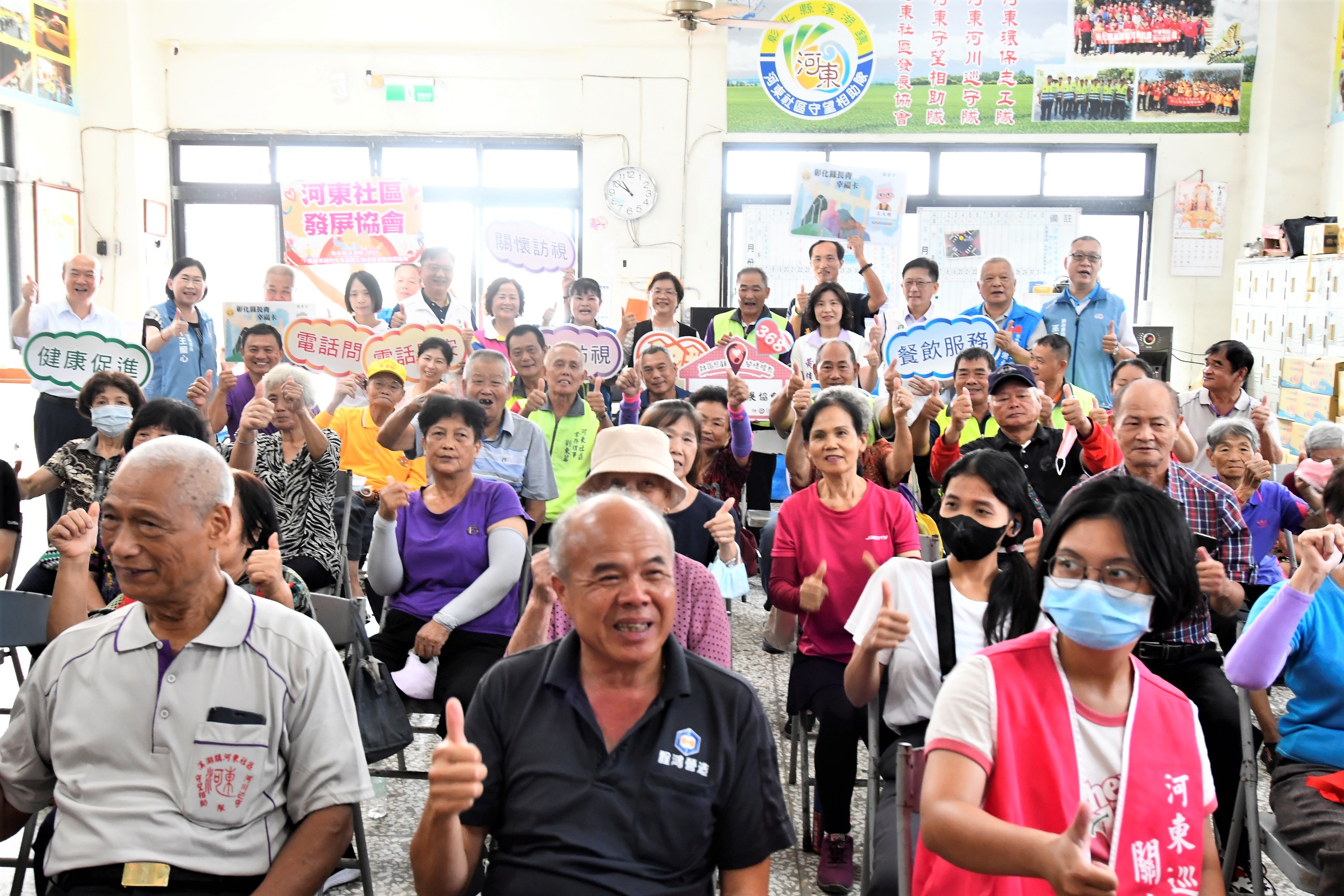 河東社區理事長黃清浪表示,感謝王縣長縣府團隊用心規劃福利政策,並大力推動社區關懷據點的設置,也感謝何炳樺鎮長公所團隊,以及里長的協助與支持,據點才能圓滿揭牌,更感謝河東社區所有熱心的志工朋友的努力付出,以及長輩們的用心支持。據點舉辦各項健康促進課程,期盼預防、延緩失能及落實在地老化的目標,本據點目前服務時間為禮拜一跟禮拜二的早上8點半到11點半,未來朝向每週五天的服務目標努力,相信透過參與據點活動,長輩的健康與活力將會大大提升。