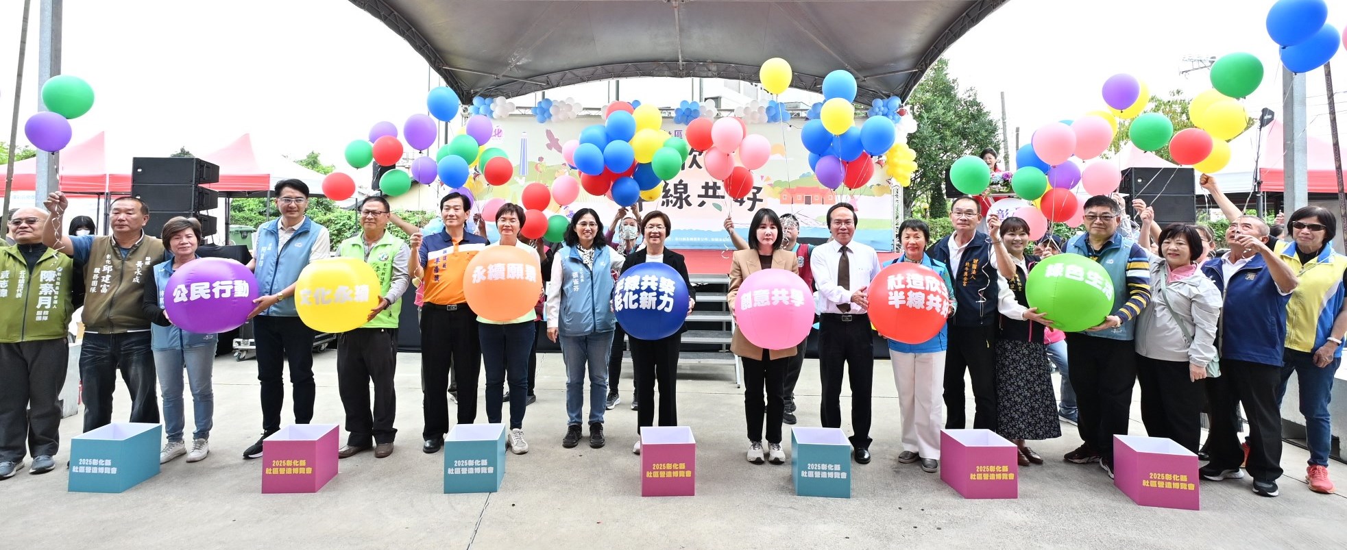 (記者邱暐茹 彰化報導)彰化縣社區的年度盛事-社區營造博覽會,今(30)日下午在北斗奠安宮停車場盛大登場,今年以【社造欣生 半線共好】為主題,縣長王惠美、北斗鎮長顏宏霖、各社區團體與上千位大小朋友一同揭開活動序幕。王縣長表示,縣府這幾年來持續在社區向下扎根,今天設置這個展出平台,就是希望將各社區平時的用心與努力,完整呈現在大家眼前,這次博覽會共集結 42 個社區以及埔心、大村、福興、田中、芬園等5個鄉鎮市公所,共同展現社造成果。所有社造工作都積極與聯合國永續發展目標(SDGs)相結合,描繪在地文化與永續生活的真實面貌。