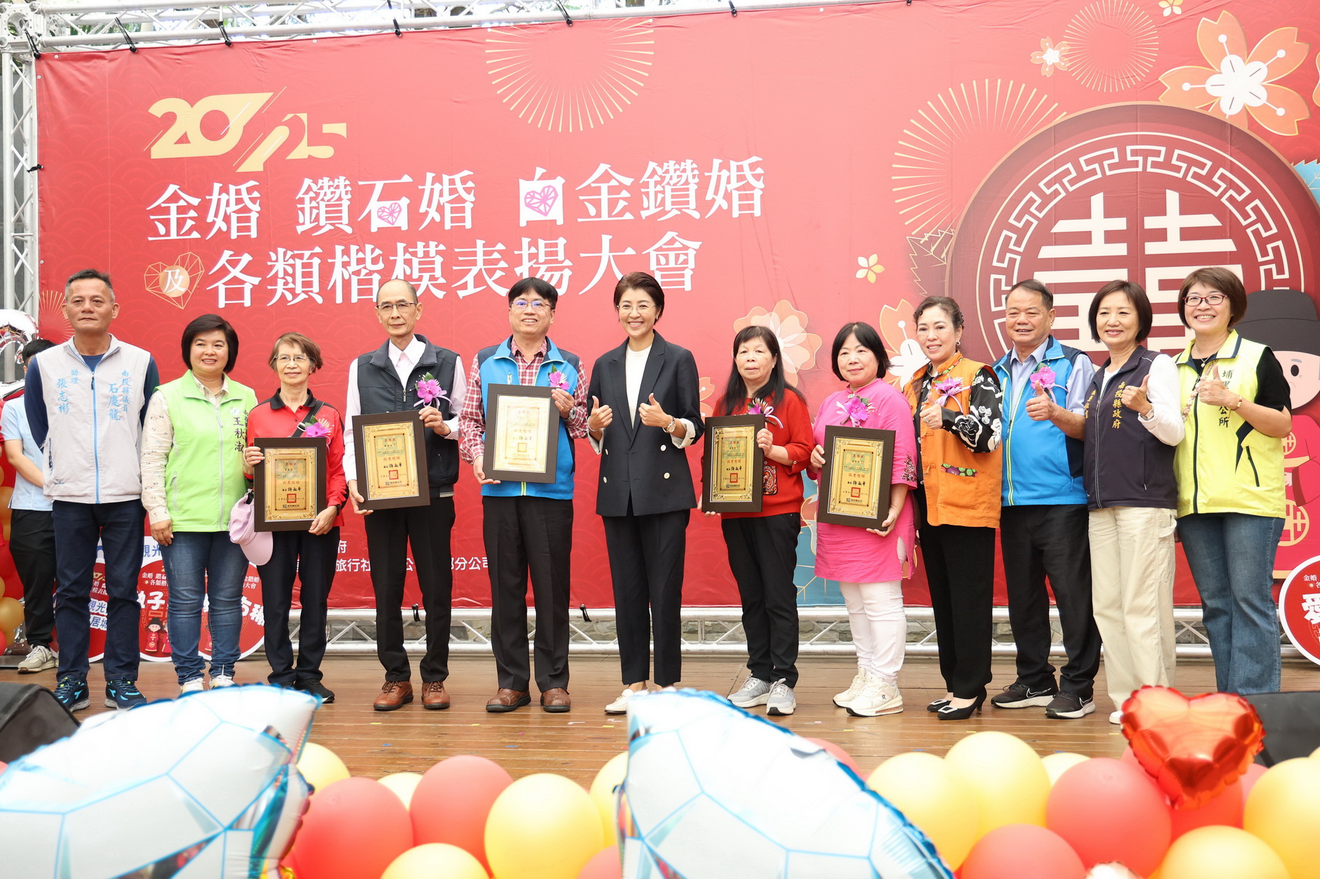 (特派員陳錦玲 南投報導) 縣府為表達對結婚50年以上之佳偶的尊重和敬意,祝賀本縣攜手一甲子之夫妻並弘揚敬老精神,於114年12月3日、4日,在九族文化村舉辦114年度南投縣金婚、鑽石婚、白金鑽婚及各類楷模表揚大會活動,一同歡慶、分享最幸福感動的時刻,並祝福每位夫婦恩愛逾恆。